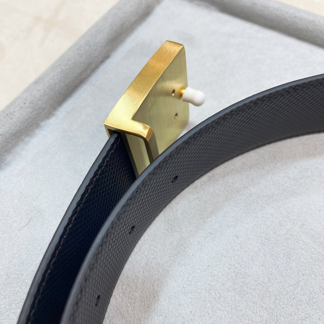 Hermès Black Belt, Trendy Men's Top-Grain Cowhide Double-Sided Belt (3.8cm)