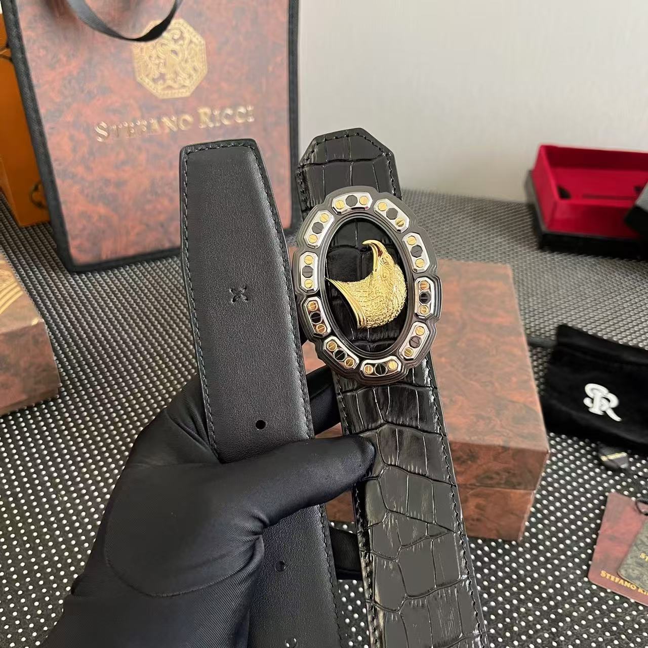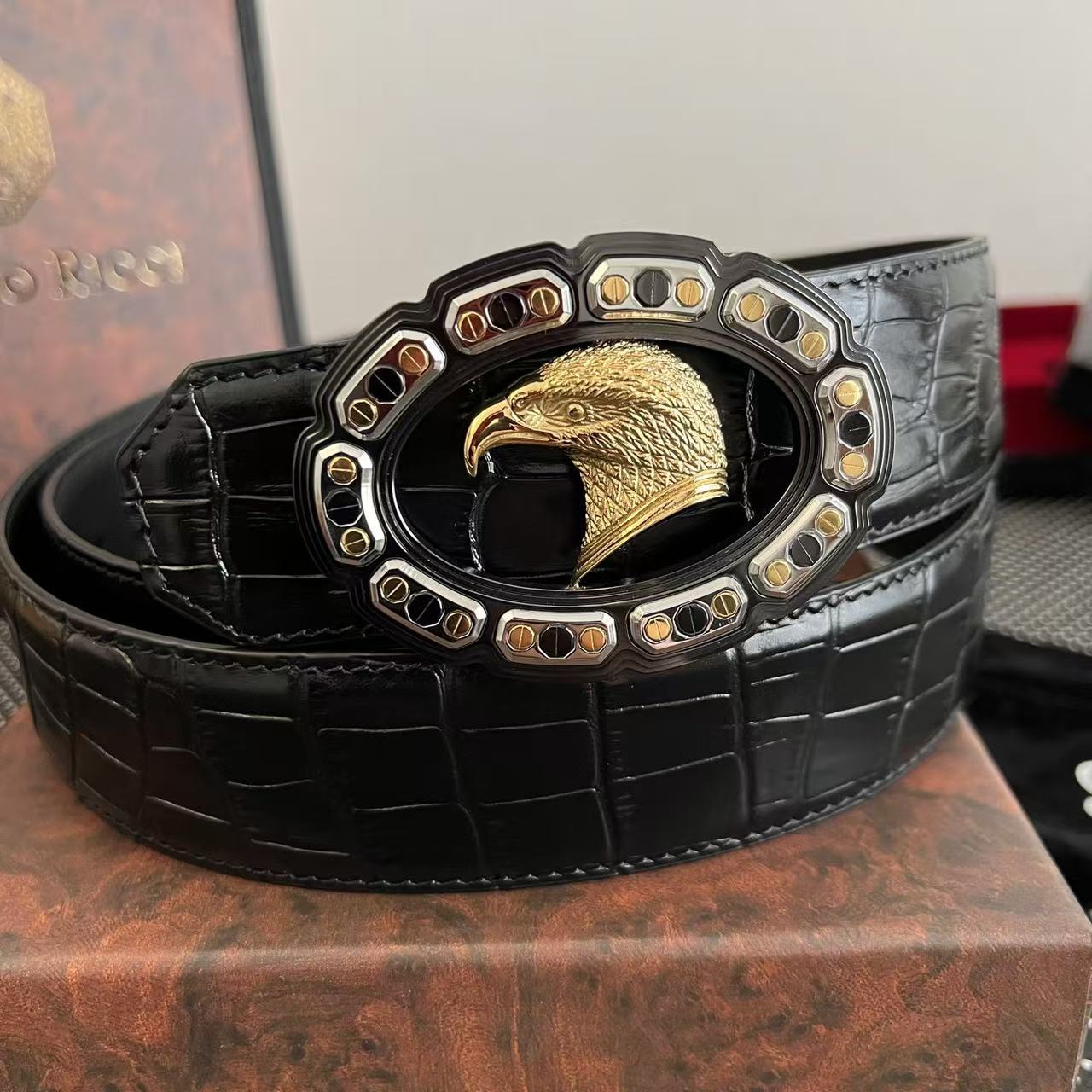 The two-tone octagonal eagle head leather belt is a unique and fashionable accessory, popular for its distinctive design and high-quality materials. This belt often features two colors, creating a striking contrast and adding visual impact. The octagonal eagle head buckle is not only instantly recognizable but also symbolizes strength and elegance, making it suitable for a variety of occasions. Whether paired with casual or formal attire, the two-tone octagonal eagle head belt adds a touch of personality and style to any outfit, making it a popular choice among fashion enthusiasts.