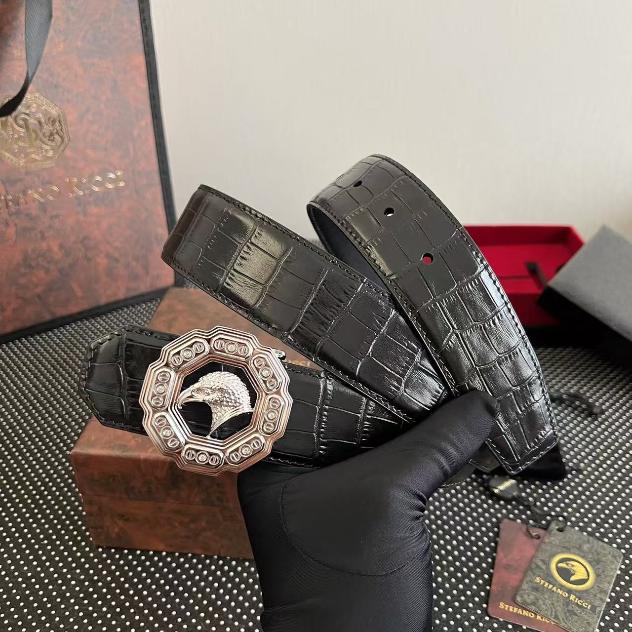 The two-tone octagonal eagle head leather belt is a unique and fashionable accessory, popular for its distinctive design and high-quality materials. This belt often features two colors, creating a striking contrast and adding visual impact. The octagonal eagle head buckle is not only instantly recognizable but also symbolizes strength and elegance, making it suitable for a variety of occasions. Whether paired with casual or formal attire, the two-tone octagonal eagle head belt adds a touch of personality and style to any outfit, making it a popular choice among fashion enthusiasts.