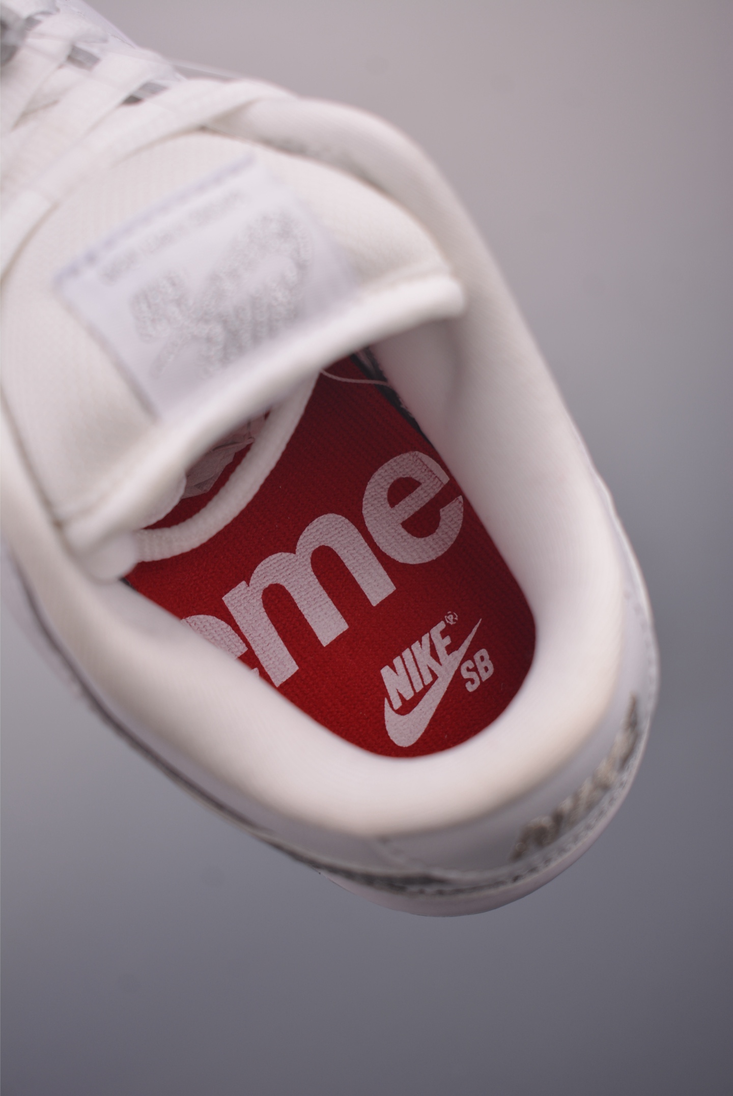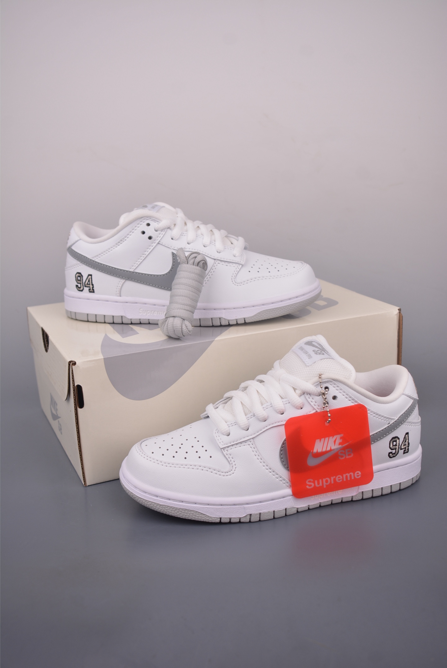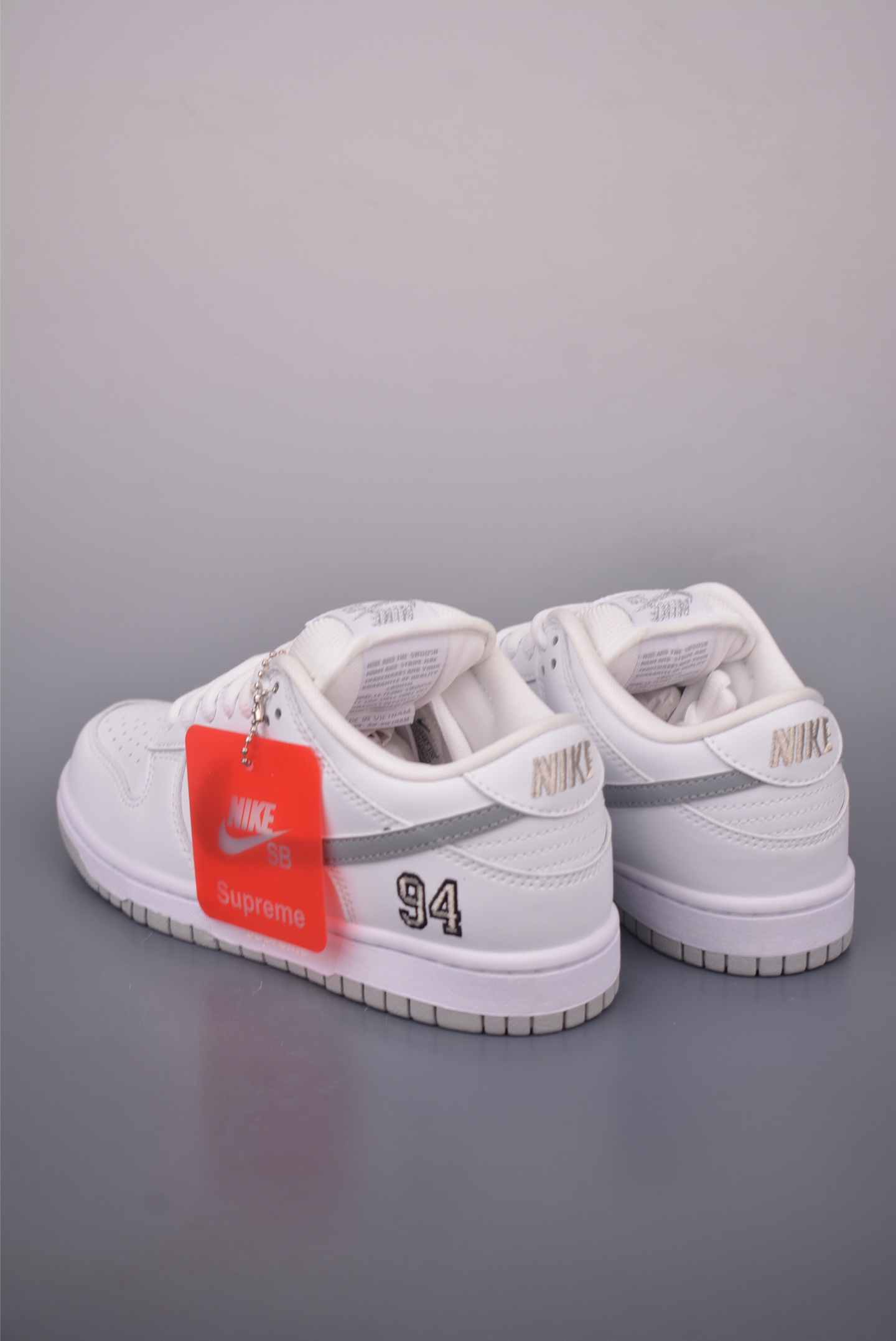 The Nike SB Dunk Low White and Grey Swoosh 94 Joint Edition is a classic skate shoe that combines a simple white and grey design, showcasing the perfect combination of style and functionality.