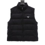 The vest is lined with high-quality down (referring to authentic Prada filling standards). The down content is high, offering excellent loft, free of stiff stems or lumps, and it quickly rebounds when pressed, creating a soft, full feel. The cropped silhouette and optimal fill provide effective warmth in cool autumn and winter weather without the bulk of overfill, achieving a perfect balance between warmth and a slimming effect. The lining is made of a fine, smooth fiber fabric that adheres closely to the down, preventing uneven warmth caused by down shifting during wear and reducing discomfort caused by fabric friction, ensuring a comfortable wearing experience from the inside out.