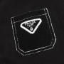 Painted, flat snap buttons: Featuring a Prada logo, the lacquered, flat snap buttons fasten smoothly and securely, preventing loosening or falling off. The lacquer finish ensures the buttons' vibrant, long-lasting color and smooth, delicate surface, making them resistant to scratches and discoloration from daily wear. The flat design seamlessly blends with the fabric, creating a minimalist and sophisticated look. The logo is clearly and neatly engraved, without any fuzzy edges. The details clearly reflect the brand's style, distinguishing it from the cheap, stocky feel of standard buttons.