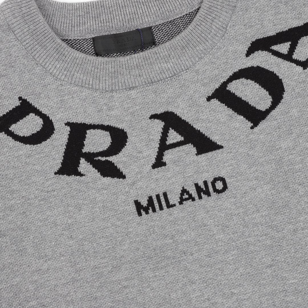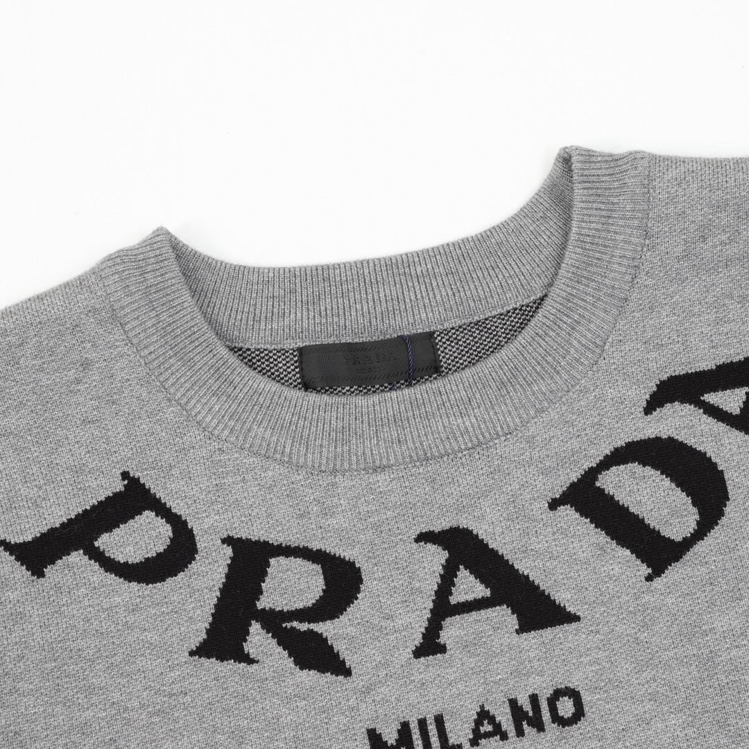 Prada Yarn-Dyed Letter Logo Knit Crew Neck Sweater Product Details