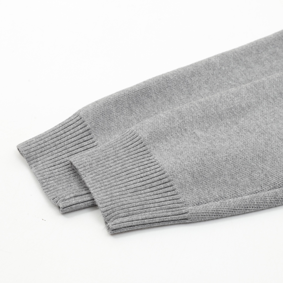 Crafted using custom-supplied wool yarn, the sweater is meticulously machine-knitted. The wool imparts a naturally soft feel and warmth, ensuring a comfortable, non-irritating fit and a delicate, fluffy texture. The machine-knitting process creates a flat, dense texture, creating a thicker, more tactile effect while also enhancing the sweater's durability. It resists warping and pilling, effectively extending its lifespan. Wool also offers excellent breathability and moisture-wicking properties, making it suitable for cooler weather in spring and autumn, and perfect for layering in winter for added warmth. This sweater combines fashion and practicality, easily adapting to any season.