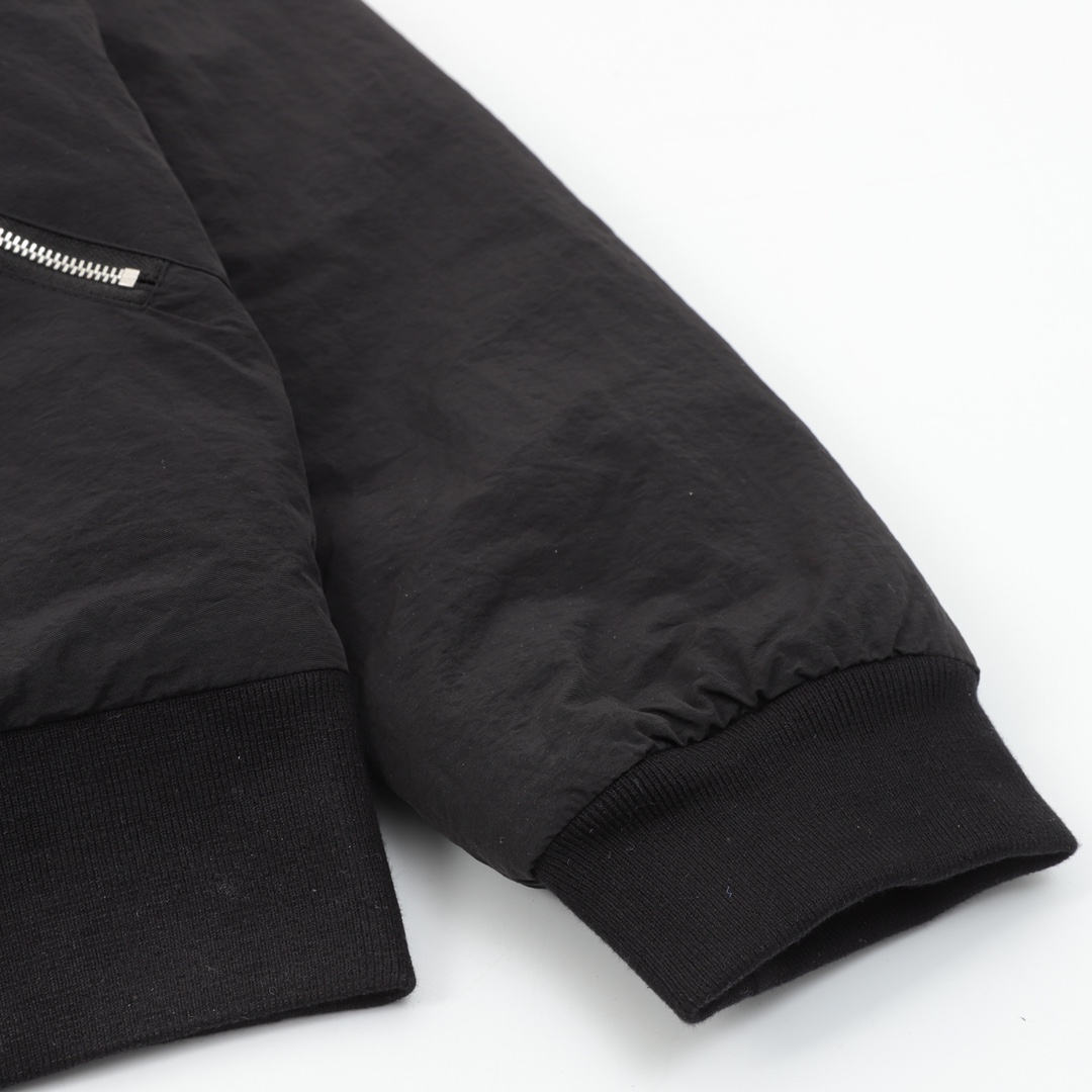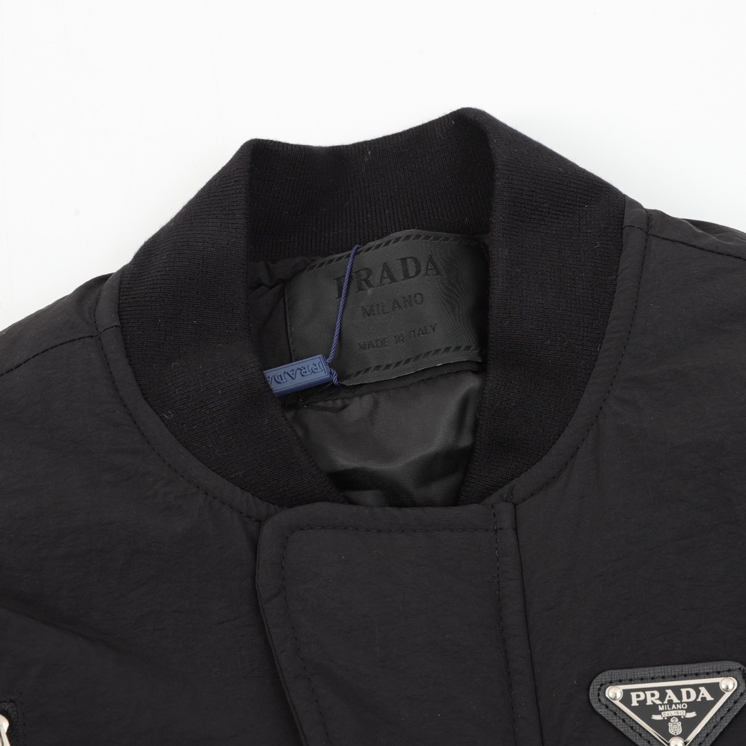 A classic yet practical fall/winter piece from PRADA, this triangle logo baseball jacket features "high-end custom-made fabrics and exquisitely detailed design." Built to the same quality standards as the original, which cost 15,679 yuan, it exudes luxury elegance from the material combination to the trimmings. It combines the sleek silhouette of a baseball jacket with the warmth of a padded jacket, making it a must-have for enhancing your fall/winter look. 1. Core Fabric: Custom-supplied 100% cotton + fleece composite for dual comfort and warmth.