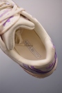 The upper design utilizes a combination of satin, mesh, ponyhair, and suede, creating a unique layered look. The satin material creates a smooth sheen, the mesh enhances breathability, and the combination of ponyhair and suede adds a sense of depth and richness. The clever combination of materials adds a unique and eclectic personality to the shoe while enhancing comfort and durability.