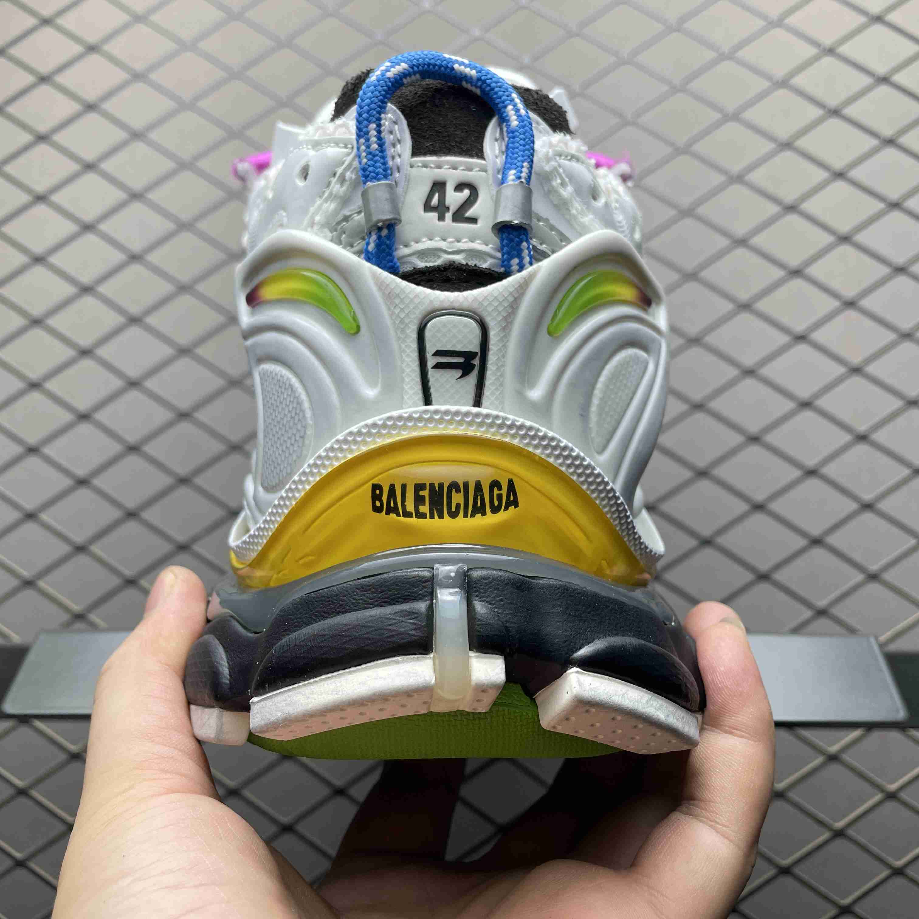The sole features a thick, multi-layered construction, providing both exceptional comfort and a strikingly stylish feel. Every detail of the hand-finished finish gives the shoe a timeless, vintage-inspired look. Balenciaga's signature "Runner" logo is strategically placed throughout, further elevating the brand's identity.