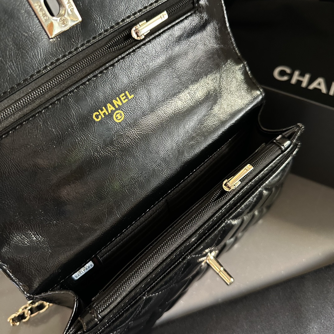 The CHANEL 23P WOC (Wallet on Chain) wallet cleverly blends classic design with practical functionality, showcasing French elegance and the independent style of modern women. Crafted from high-quality cowhide and featuring signature quilted stitching, the delicate texture exudes understated luxury.