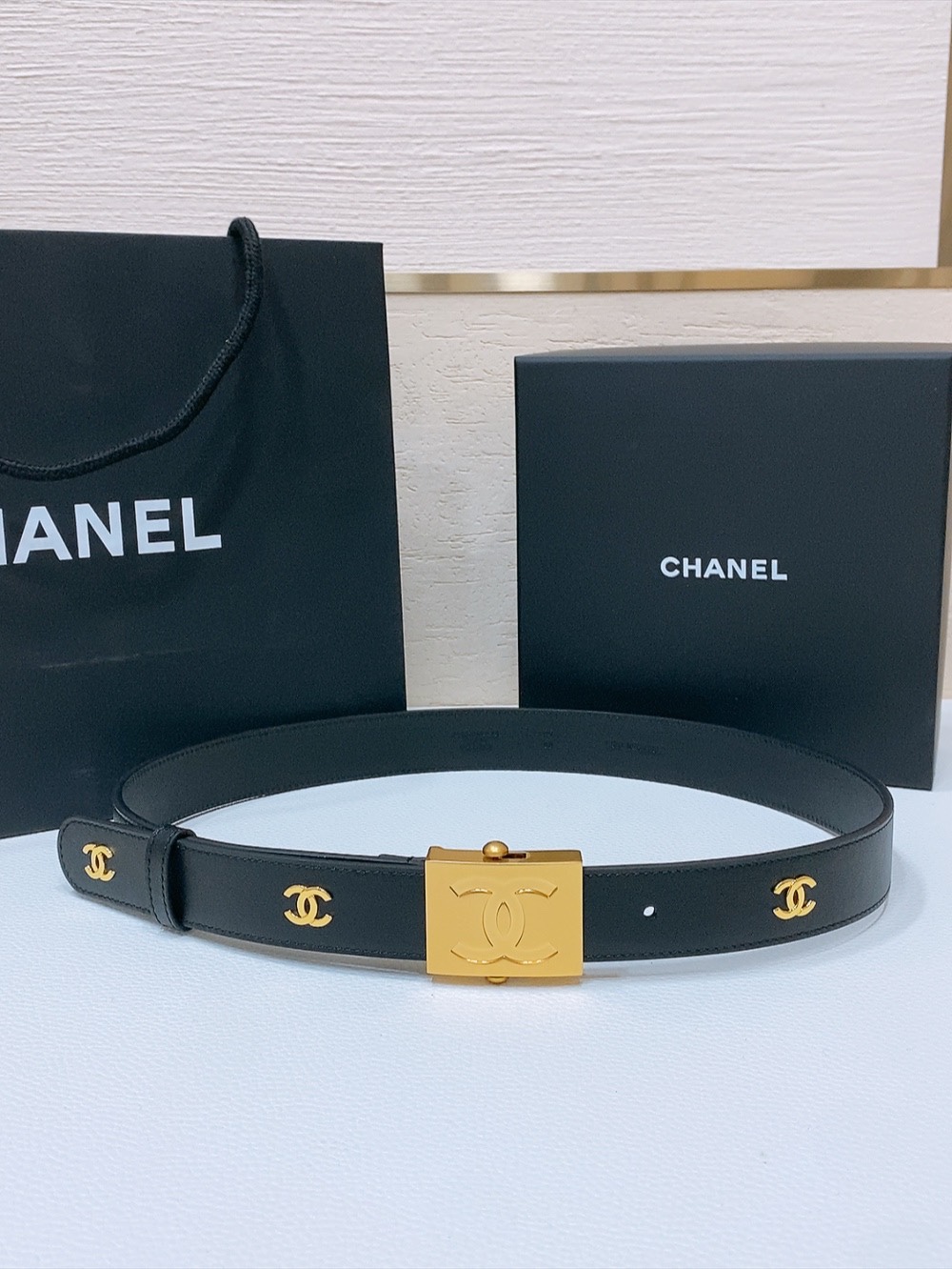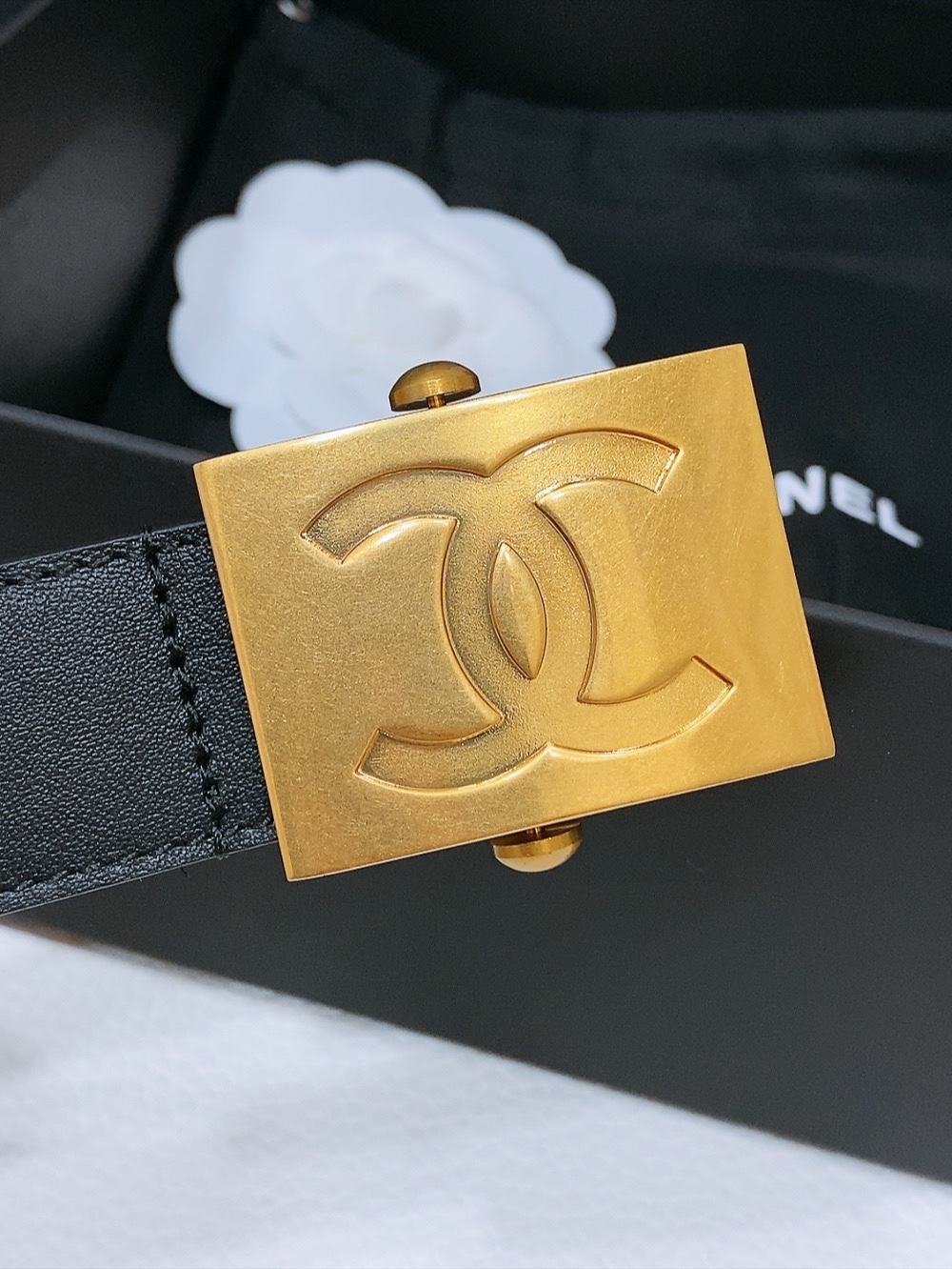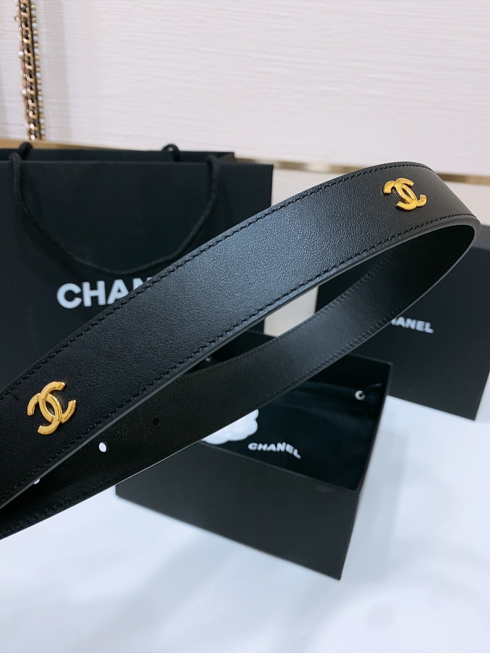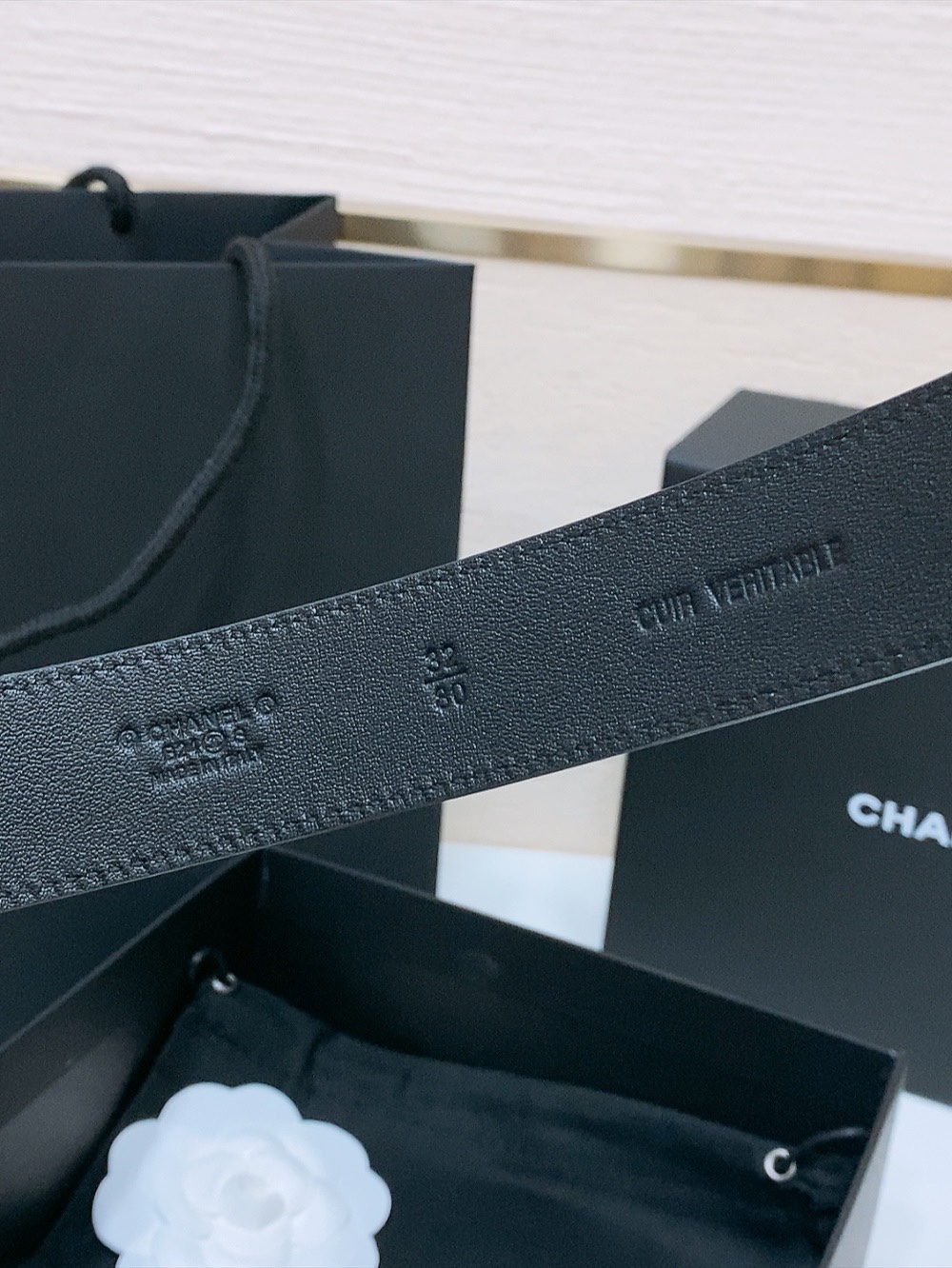 This Chanel calfskin belt features the brand's iconic CC logo buckle, accented by vintage gilded metal, showcasing a stylish blend of elegance and strength. Crafted from soft, delicate calfskin, it offers a sleek, smooth feel and comfortable fit. Its classic 3.0cm width perfectly contours the waistline, effortlessly complementing any outfit.