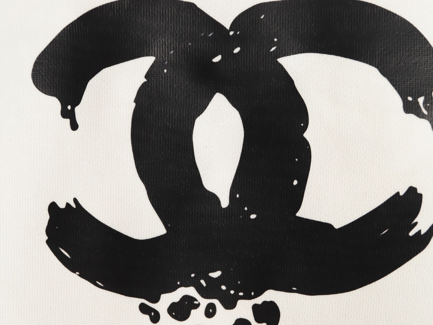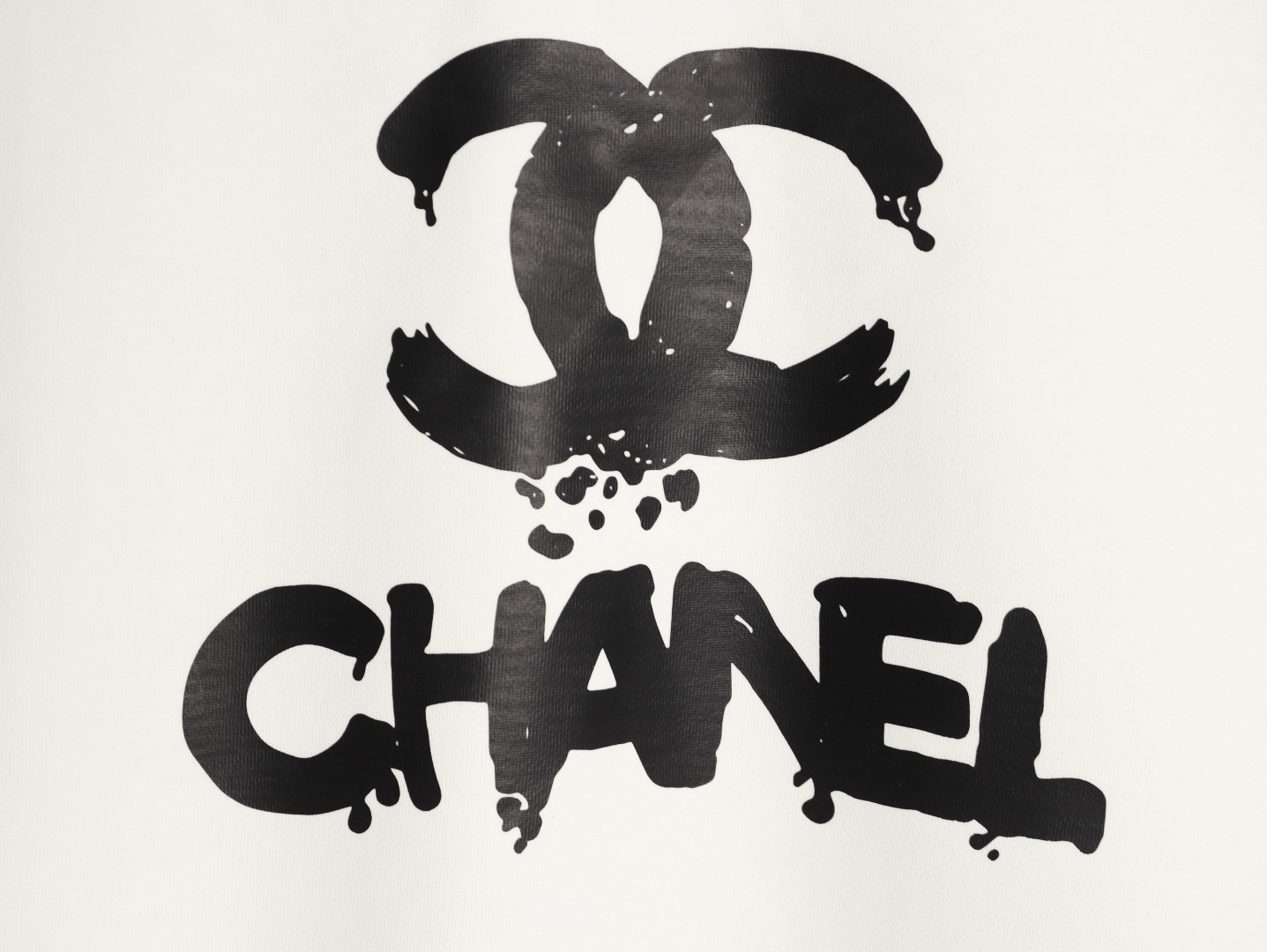This Chanel splashed ink crewneck sweatshirt is crafted from 480g premium combed cotton, boasting a thick, soft texture and exceptional handfeel, offering both comfort and durability. It features a designer collar tag and a thick, white hangtag, along with original hanging beads, showcasing authentic quality and meticulous attention to detail.