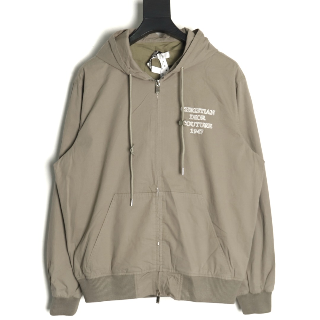 Dior all-over printed patchwork letter embroidered hooded trench coat