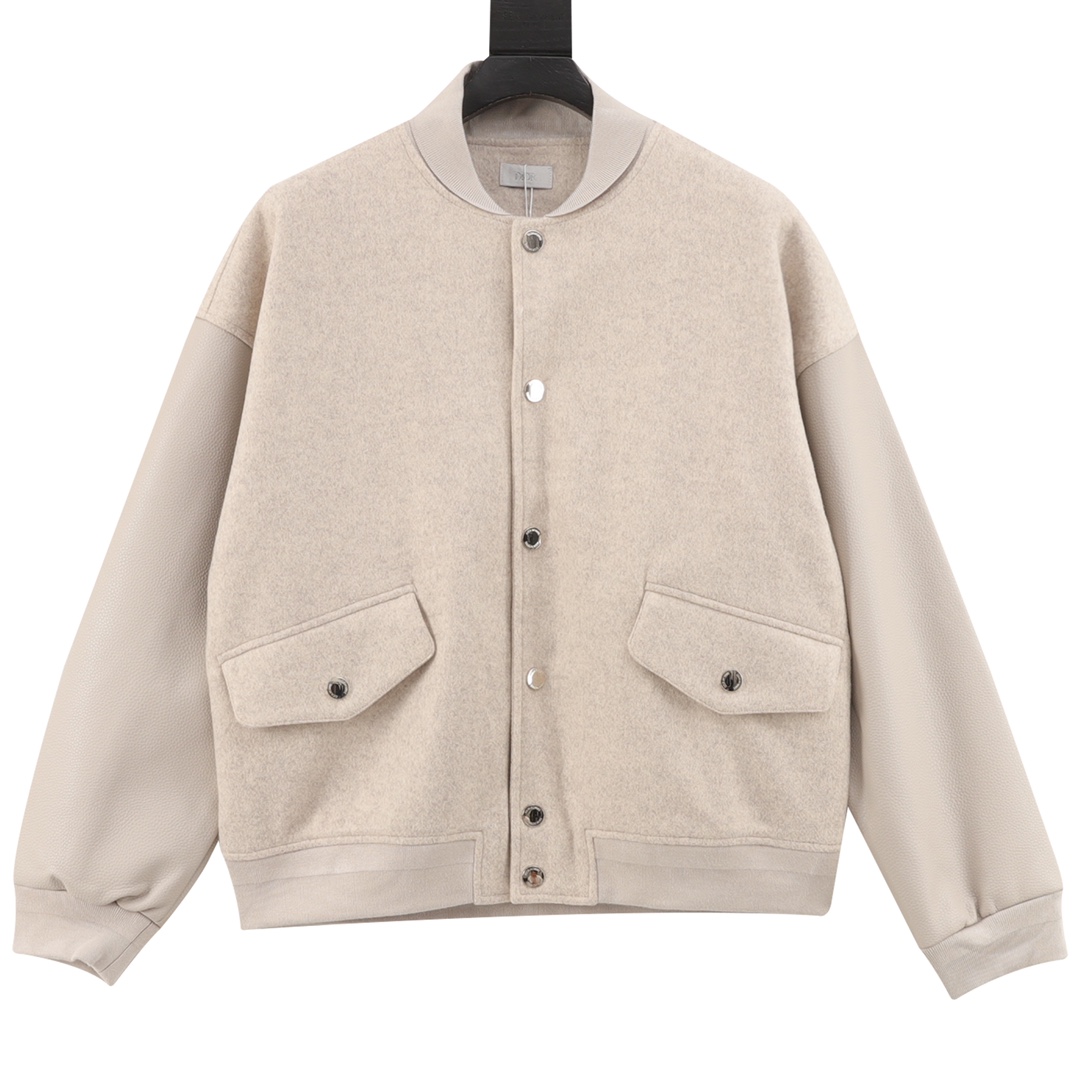 Dior baseball jacket with leather sleeves and embroidered letters on the back