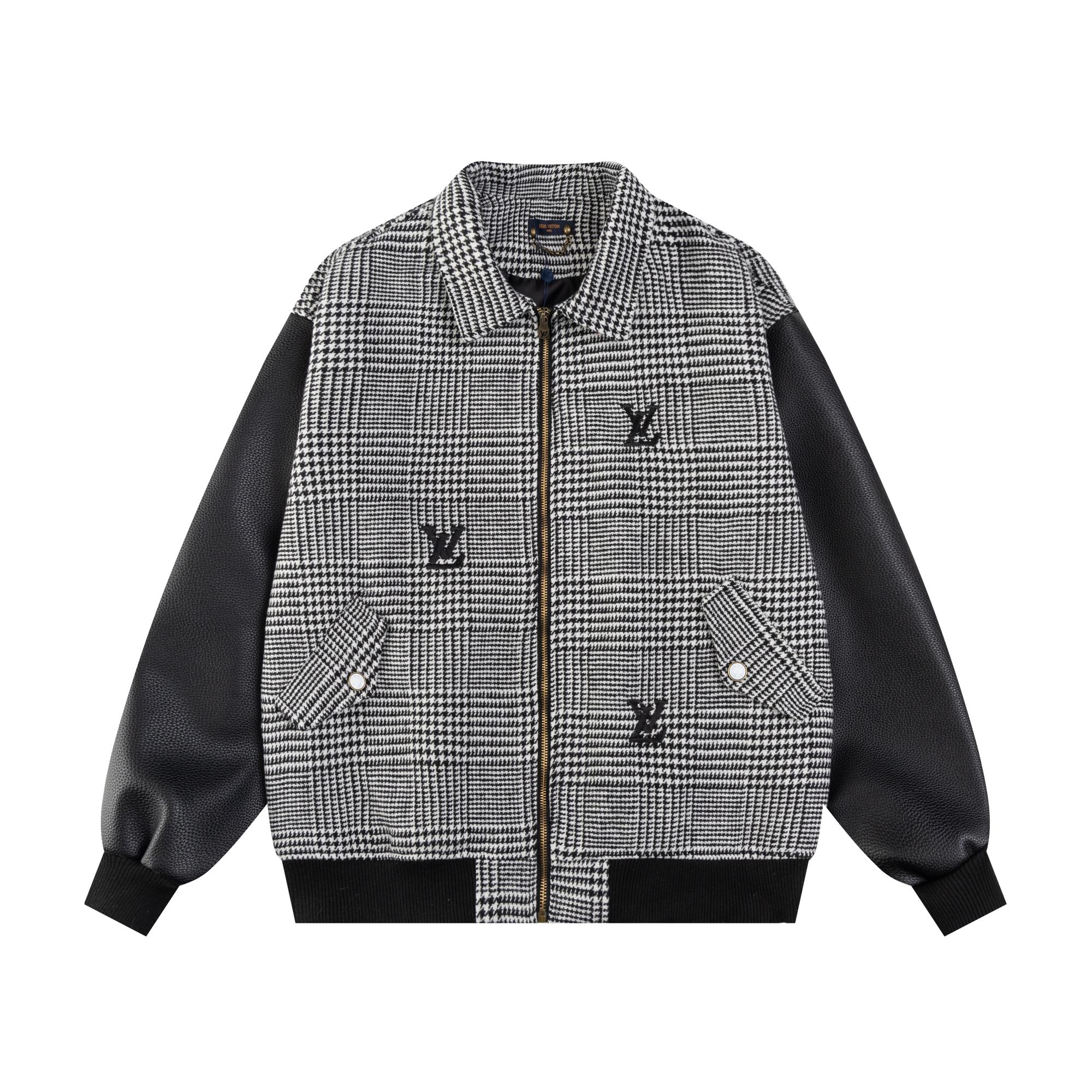 Louis Vuitton British Elegant Leather Collection Leather and Wool Blend Cardigan