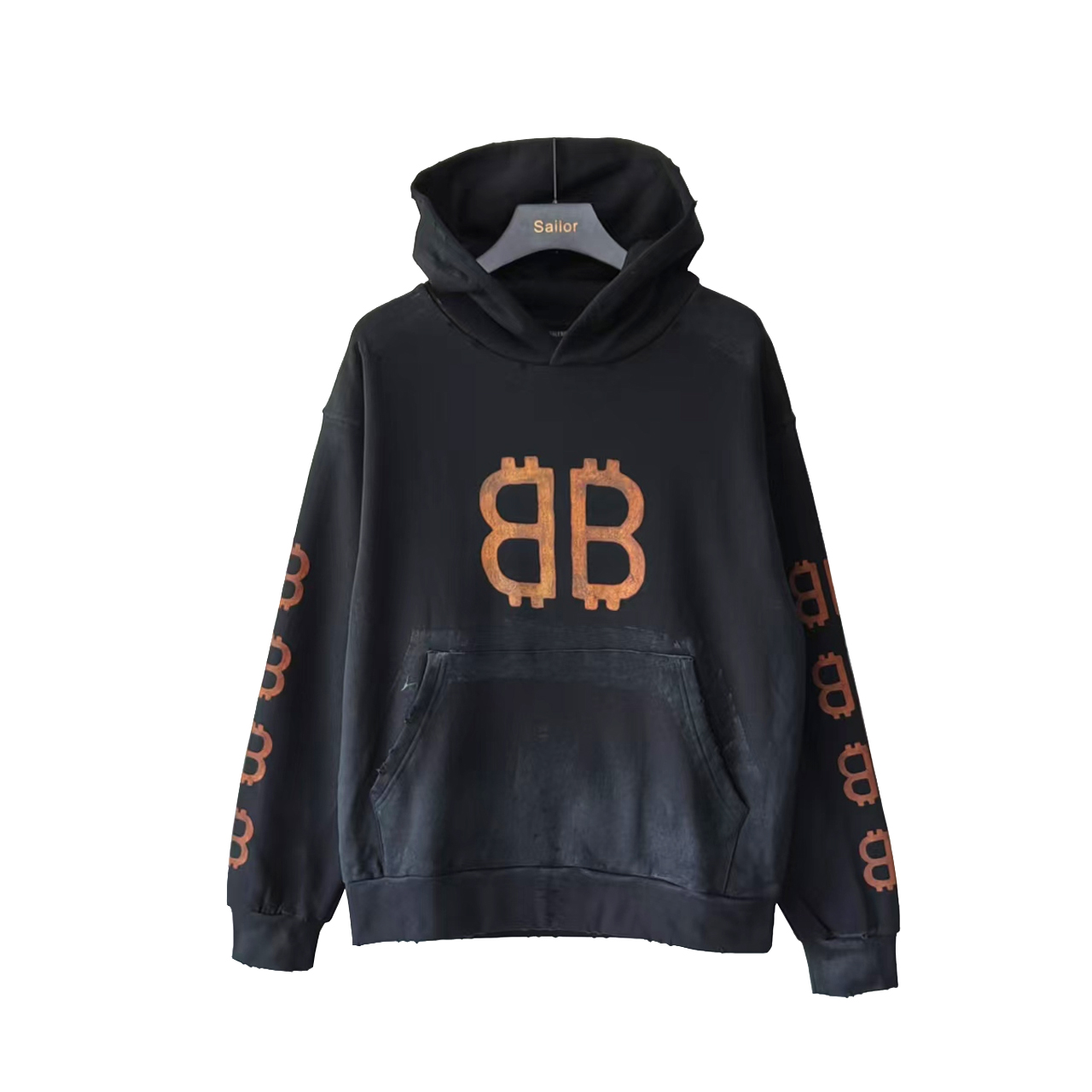 Balenciaga double B cement hand-painted hooded sweatshirt