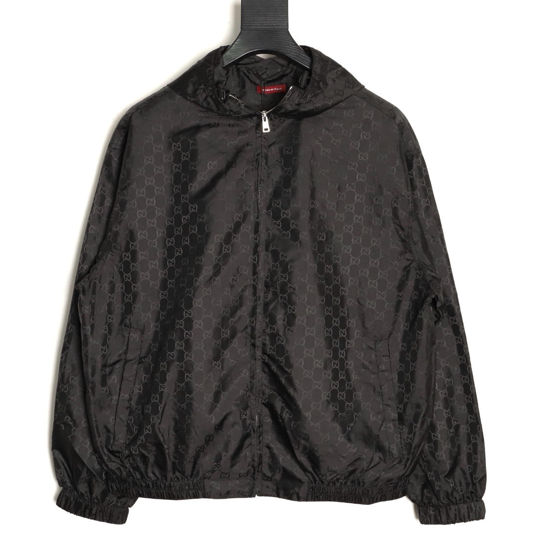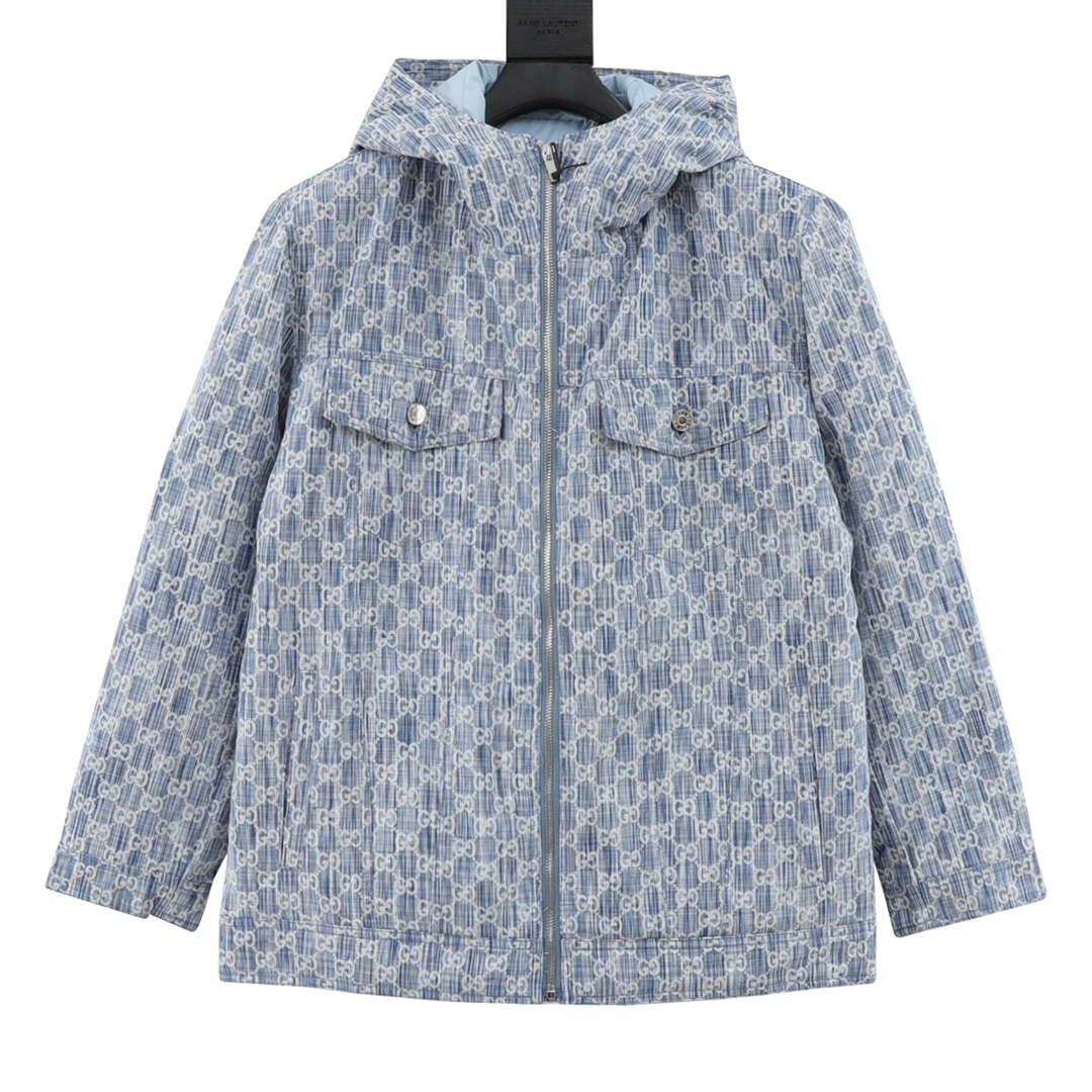Gucci all-over washed distressed jacquard LOGO hooded down jacket