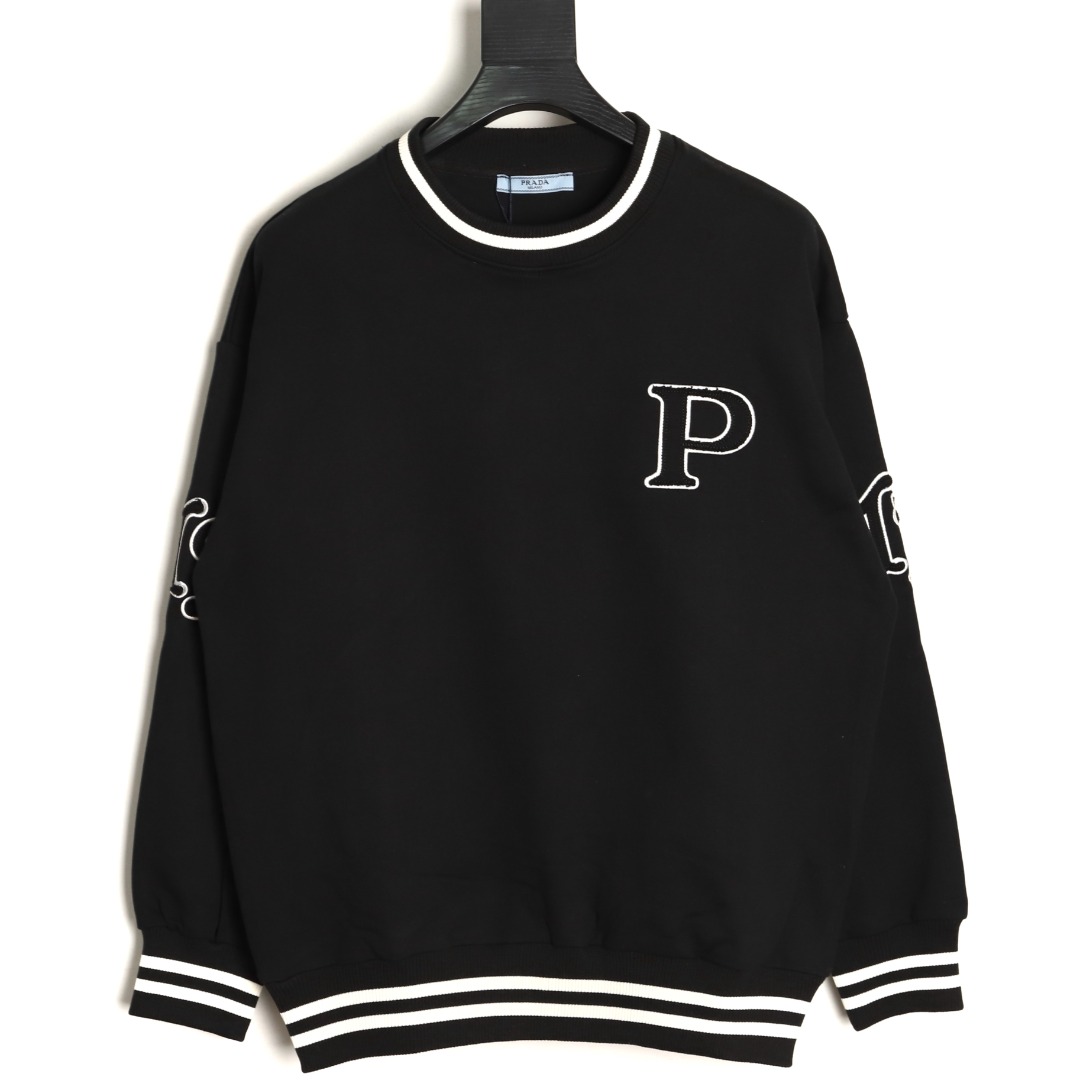 Prada contrasting thread patch lettering crew neck sweatshirt