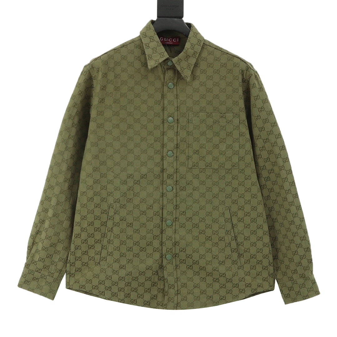 Gucci Button-down Double G All-over Print Jacquard Stand-up Collar Shirt Jacket