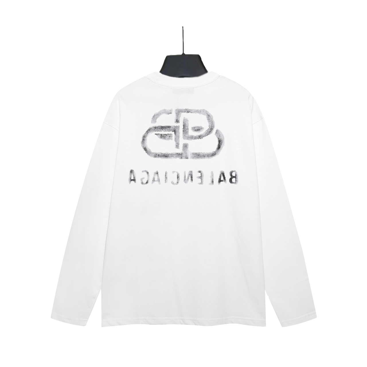 Balenciaga 2024ss charcoal letter print long sleeve white