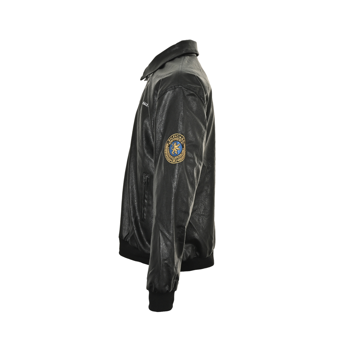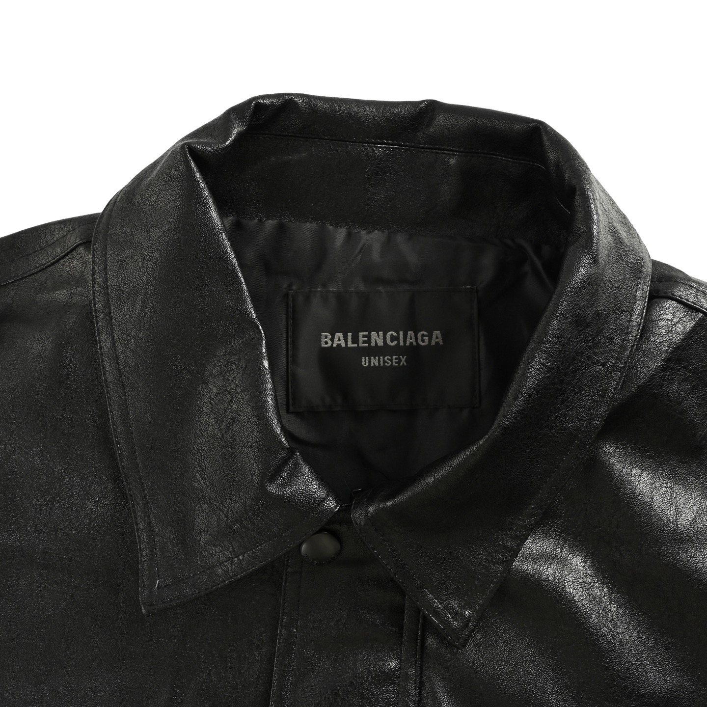 BALENCIAGA Embroidered Sleeve Badge Leather Jacket