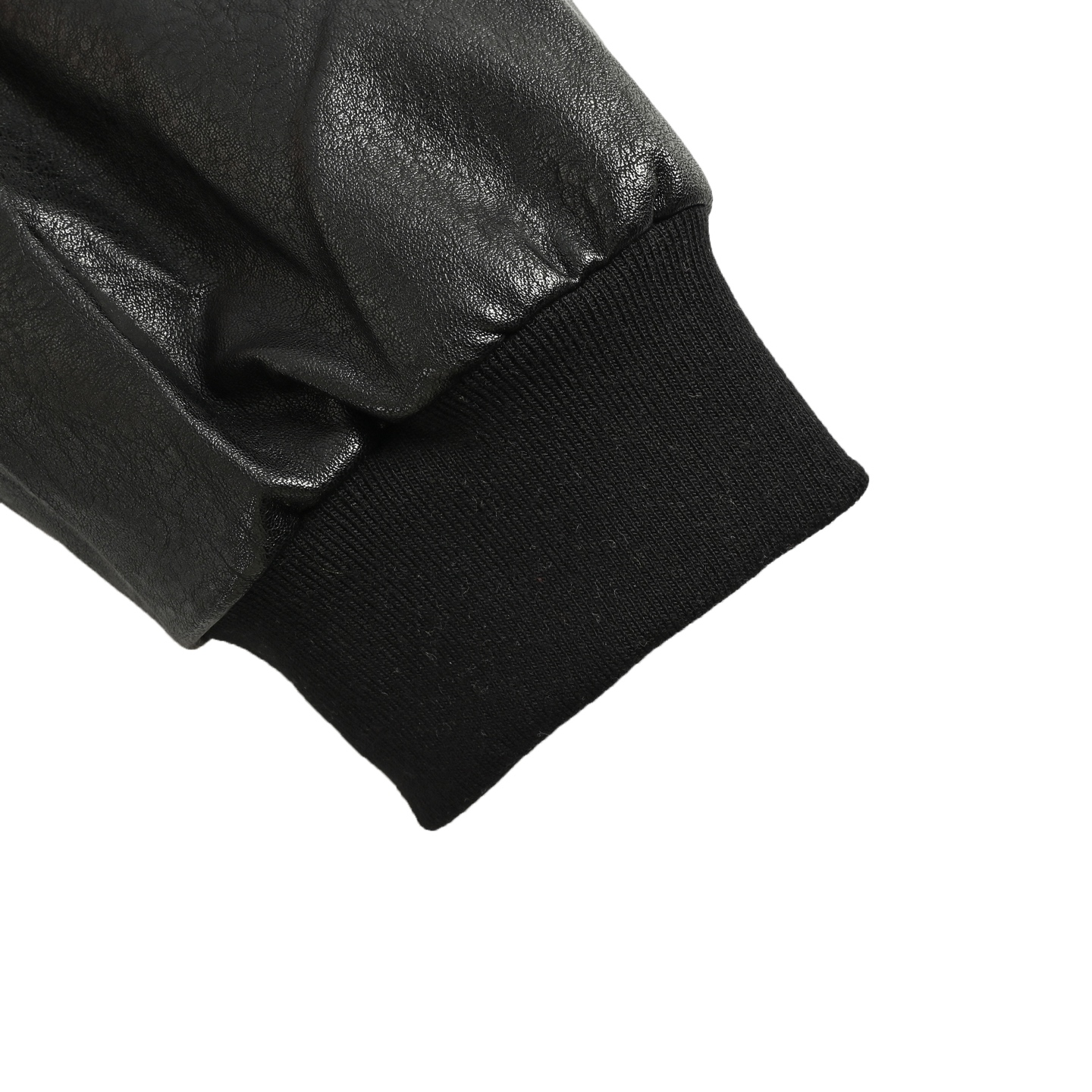 Crafted from premium leather, the black leather exudes a cool aura. The lapel and naturally wrinkled leather grain create a vintage-modern feel.