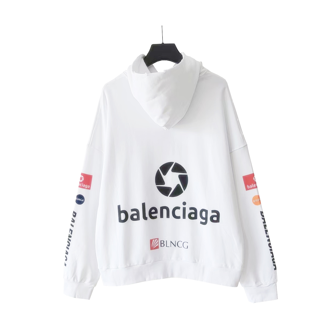 The same style worn by the Balenciaga main model in 2023, featuring an all-over racing logo design.