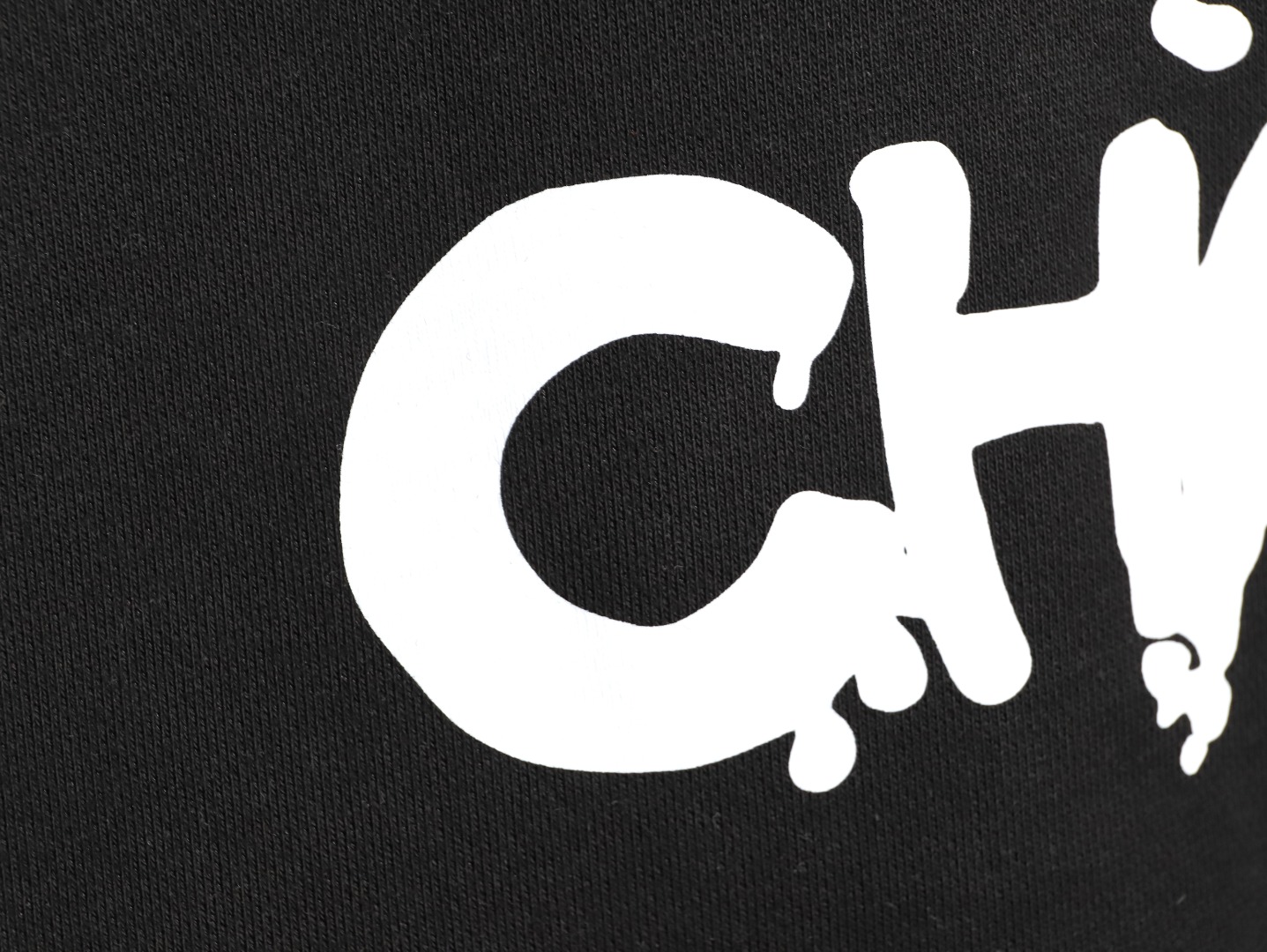 This Chanel splashed ink crewneck sweatshirt is crafted from 480g premium combed cotton, boasting a thick, soft texture and exceptional handfeel, offering both comfort and durability. It features a designer collar tag and a thick, white hangtag, along with original hanging beads, showcasing authentic quality and meticulous attention to detail.