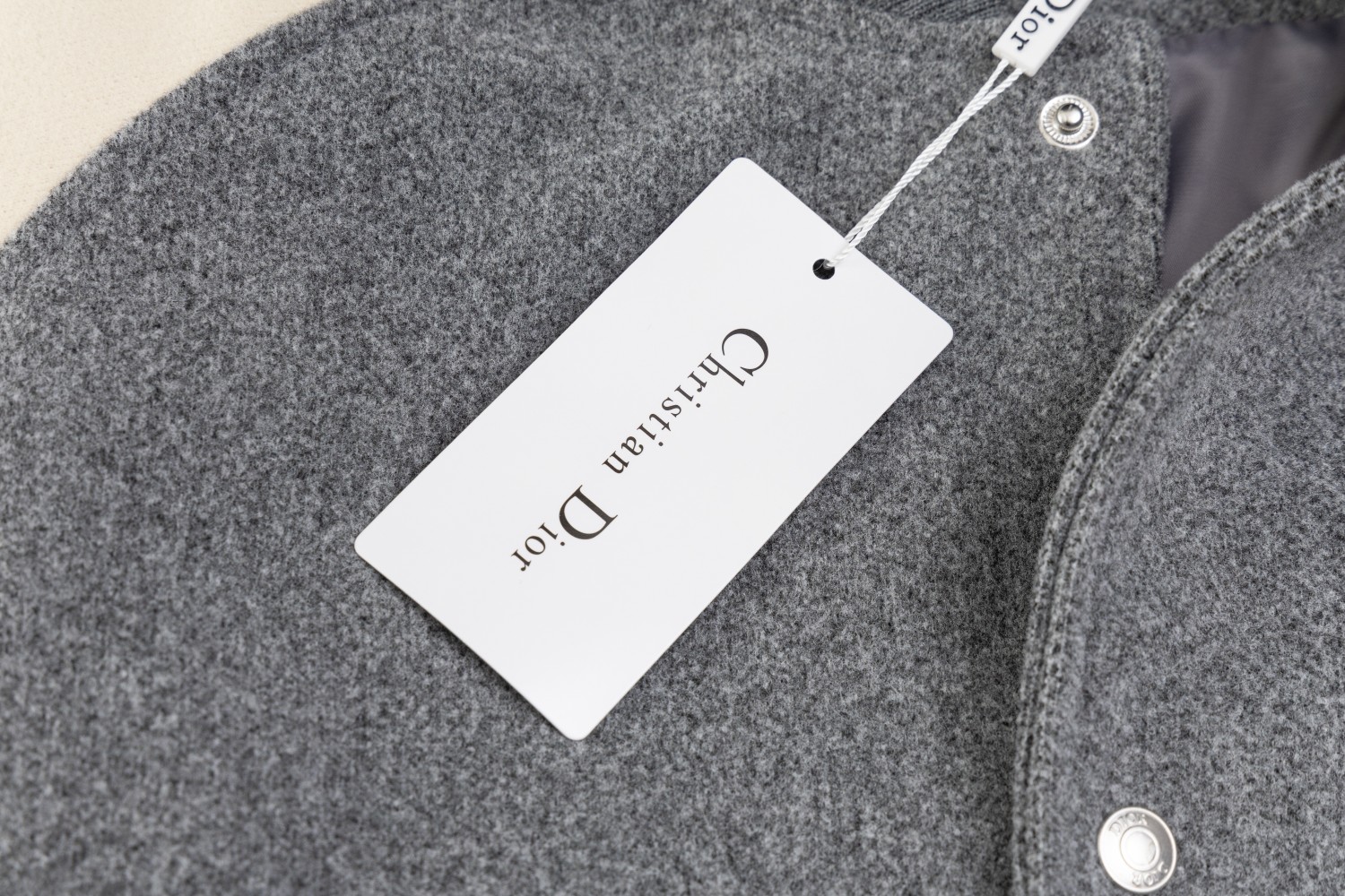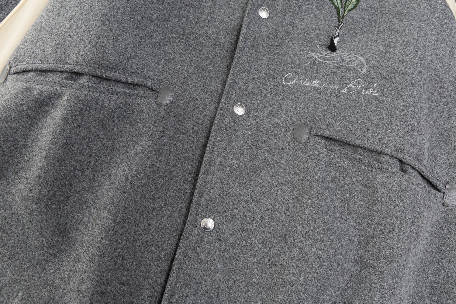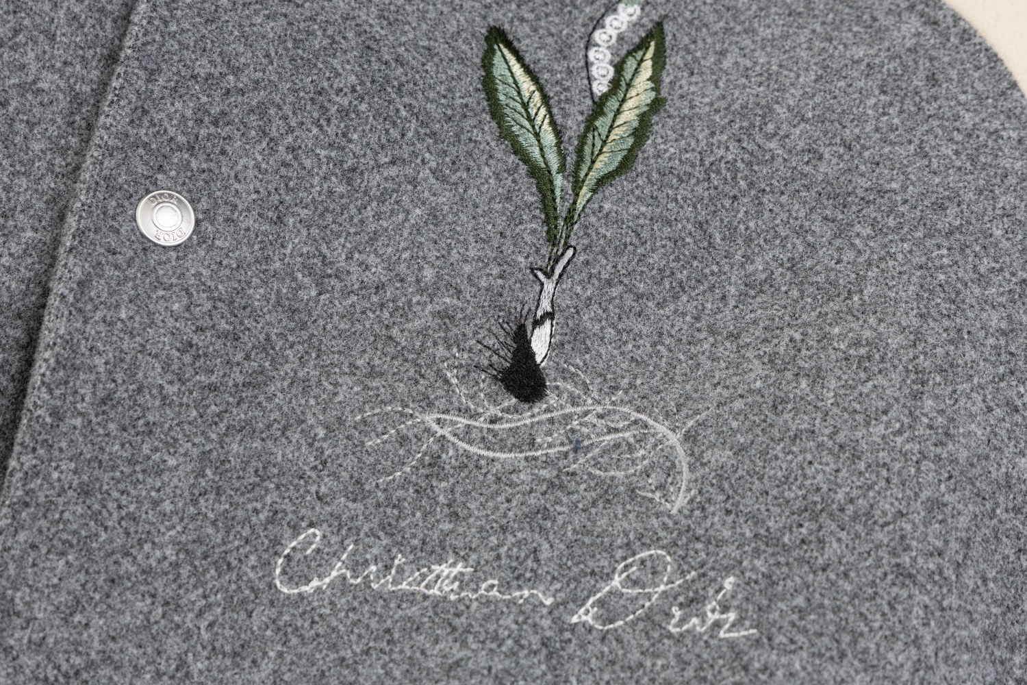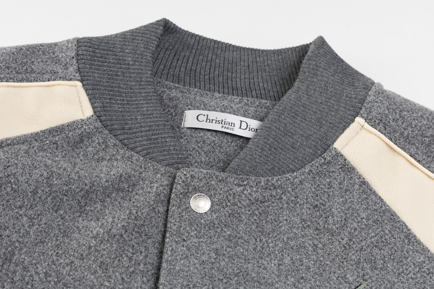 The new Dior 24SS baseball jacket is crafted from a heavyweight 700g Longfeng nylon fabric, boasting a thick, crisp, and premium feel, offering both warmth and a defined silhouette. The handwritten Christian Dior logo and "Lily of the Valley" logo are embellished on the front and back, creating a subtle yet sophisticated and artistic aesthetic that pays homage to the brand's heritage.