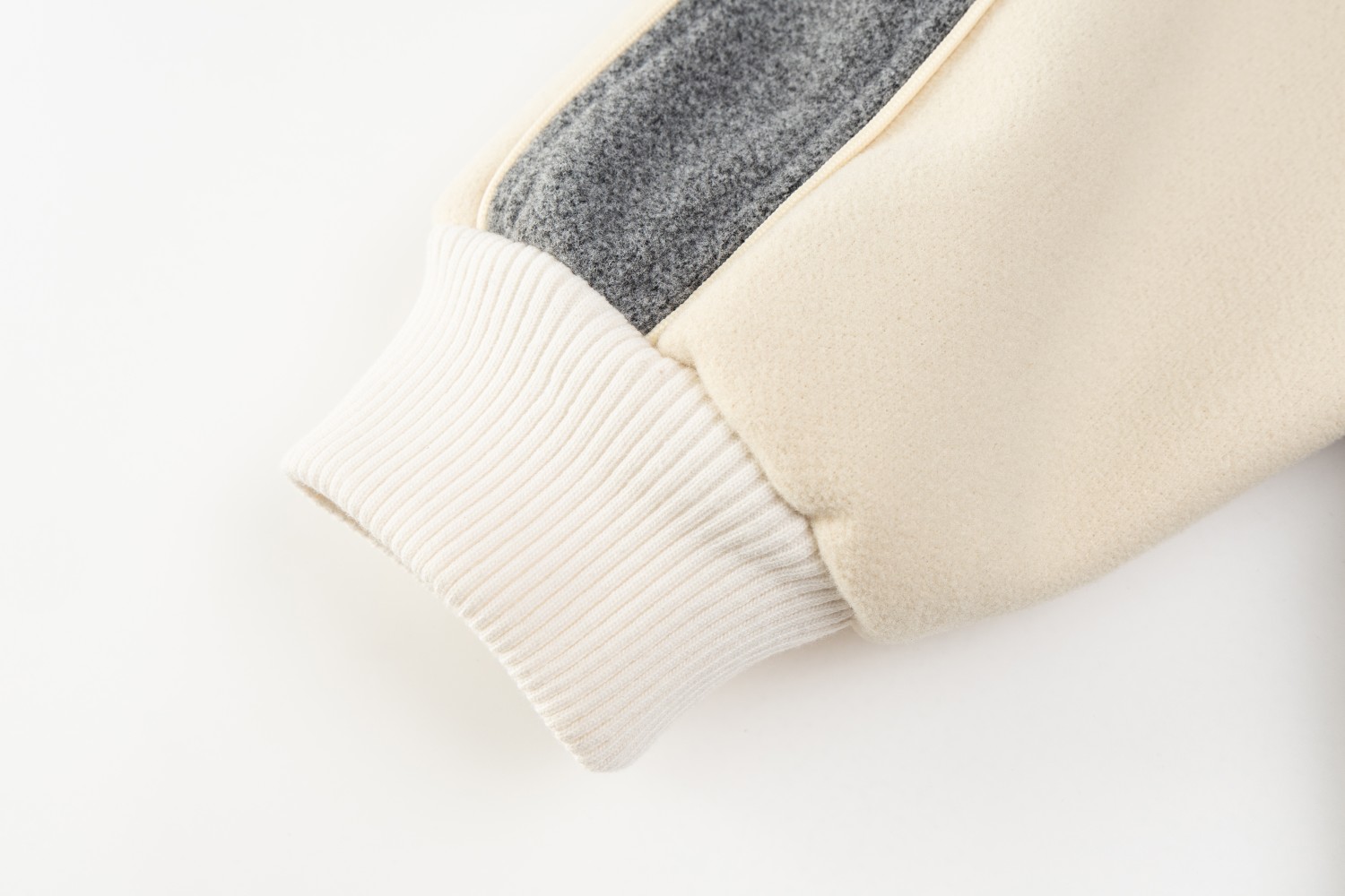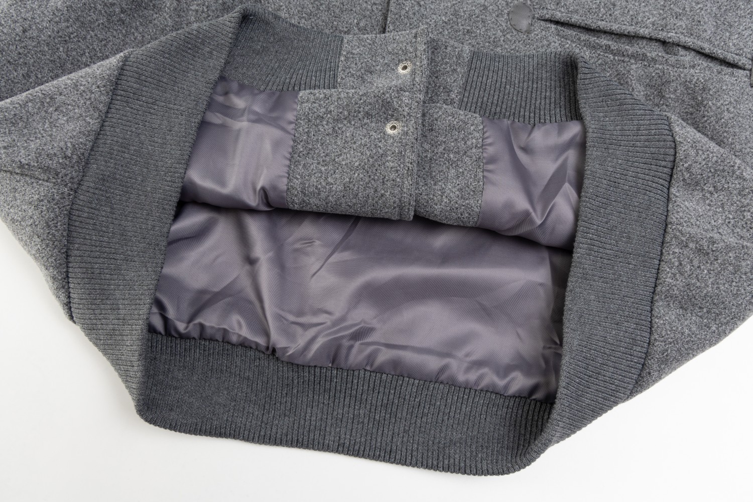 The jacket features a classic American baseball jacket silhouette with custom ribbing at the collar, cuffs, and hem, creating a streamlined look. The snap button placket and dual side concealed pockets create a practical yet stylish design. Made from custom-made original molds, featuring a full complement of trims and meticulously crafted stitching, every detail is meticulously crafted. This jacket is a must-have for those who appreciate the finest quality.