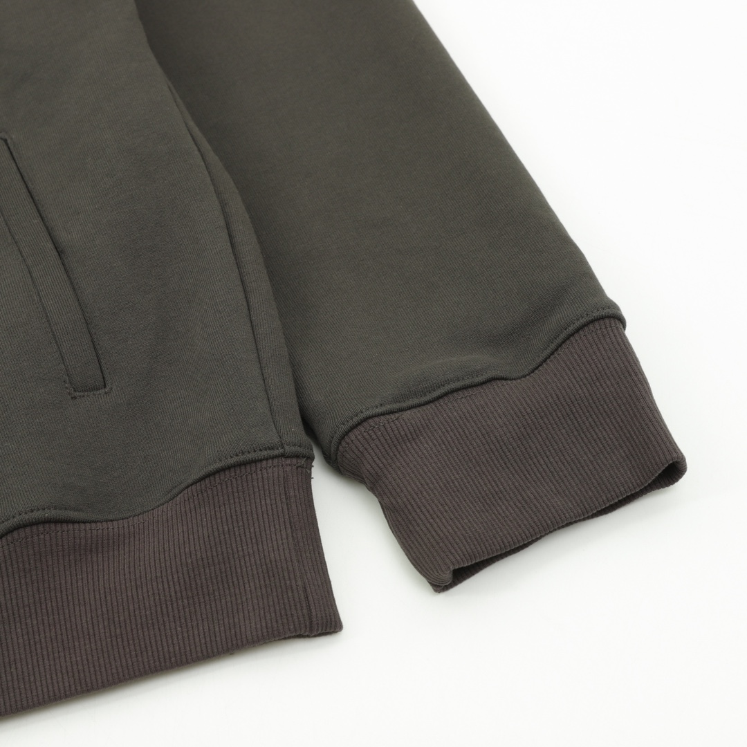 Trendy Brand Ribbing: The collar, cuffs, and hem of the sweatshirt feature trendy brand ribbing. This stretchy ribbing offers excellent resilience, allowing it to fit snugly and prevent wind from entering, while also maintaining its shape through wear and loss of shape. Furthermore, the texture of the ribbing complements the main fabric of the sweatshirt, enhancing the overall sophistication and showcasing the allure of trendy brand details. Customized Trims: From zippers to buttons, all trims are custom-made. The custom zippers slide smoothly and seamlessly, securely fasten, and resist damage over time. Other trims are designed to perfectly complement the overall style of the sweatshirt, highlighting the brand's quality in every detail. This eliminates the mismatch between standard trims and high-end fabrics, ensuring the sweatshirt maintains a high-quality aesthetic from the inside out.