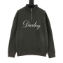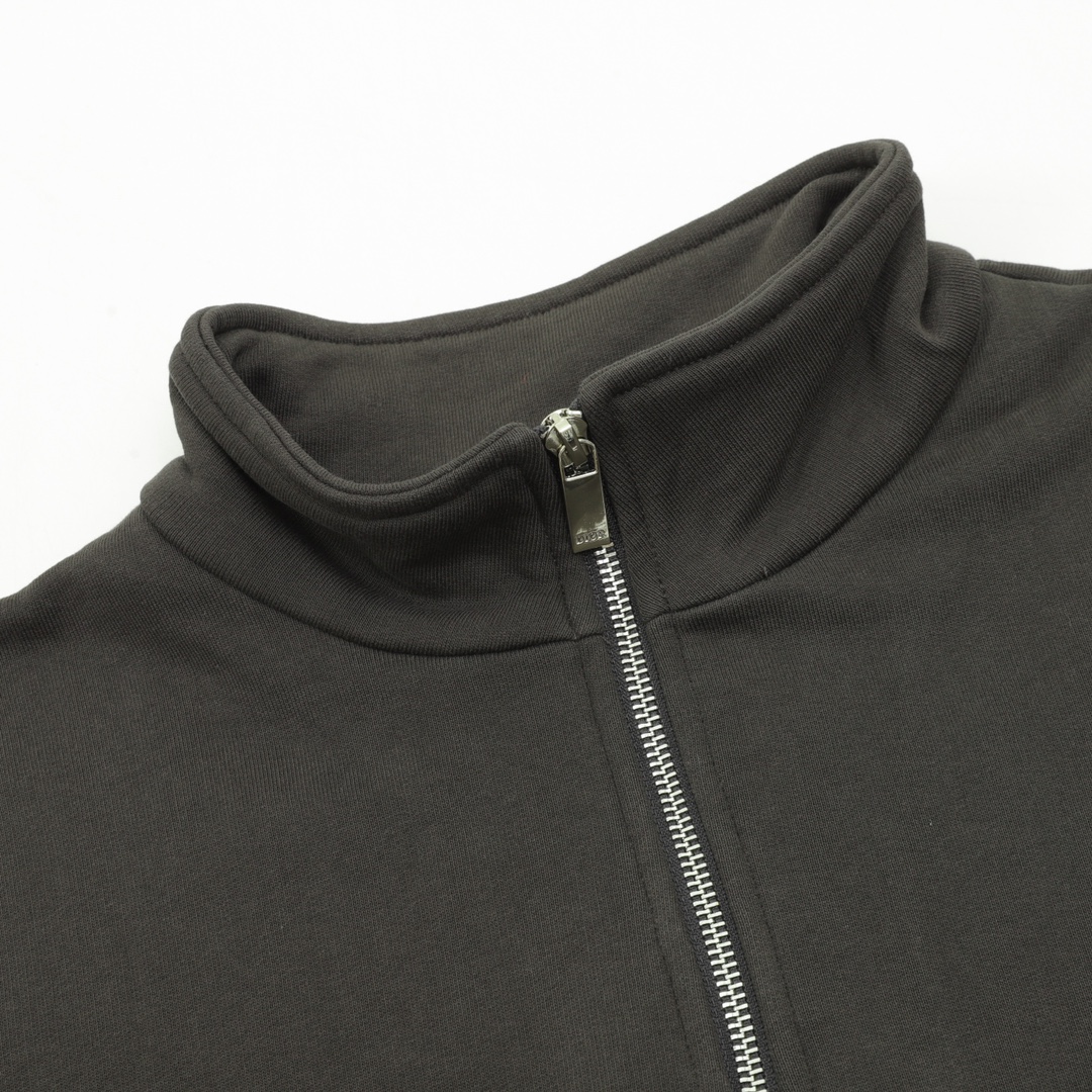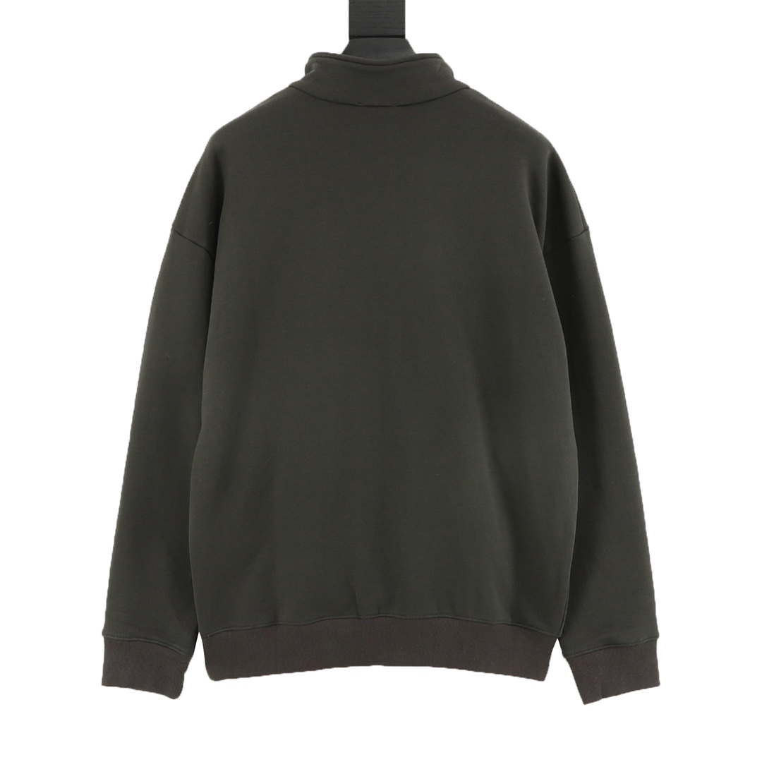 Chest Flocked CD Print: The chest features a signature flocked CD print. The flocking process creates a rich, three-dimensional effect and a delicate touch. Unlike the flat effects of ordinary prints, this vibrant, textured print is resistant to fading or cracking. It clearly displays the brand logo and adds a trendy touch to the sweatshirt, making the overall look more recognizable and easily attracting attention. Half-zip Stand Collar Design: The half-zip stand collar provides warmth in cold weather while flattering the neckline for a sharper, more refined look. The half-zip design allows for added styling flexibility, allowing for adjustable zipper opening and closing. When closed, it creates a simple, sophisticated look, while when open, it adds a casual, relaxed feel, adapting to various occasions and styles, breaking the monotony of traditional sweatshirts.