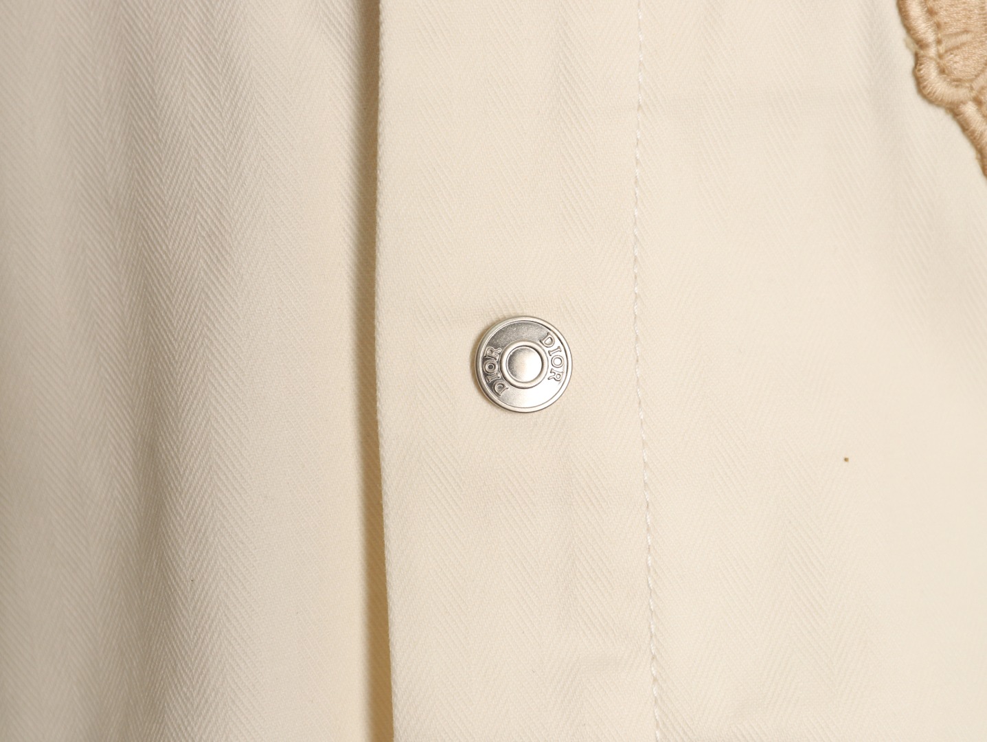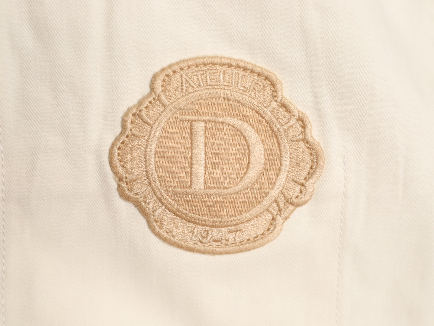 The jacket's core highlight is the Cistian Couture embroidery, crafted with exquisite craftsmanship to create a recognizable visual signature. The meticulously embroidered patches on the chest and back, each stitch meticulously detailed and defined, create a clear, three-dimensional pattern. This not only showcases the Dior brand's premium quality, but also injects a trendy, vibrant touch into the simple off-white denim base. The embroidery cleverly balances casual and refined, giving the jacket a casual, sporty feel while retaining luxurious details, making it an easy focal point.