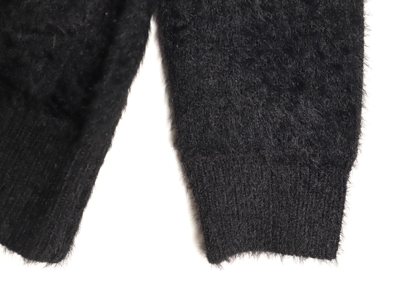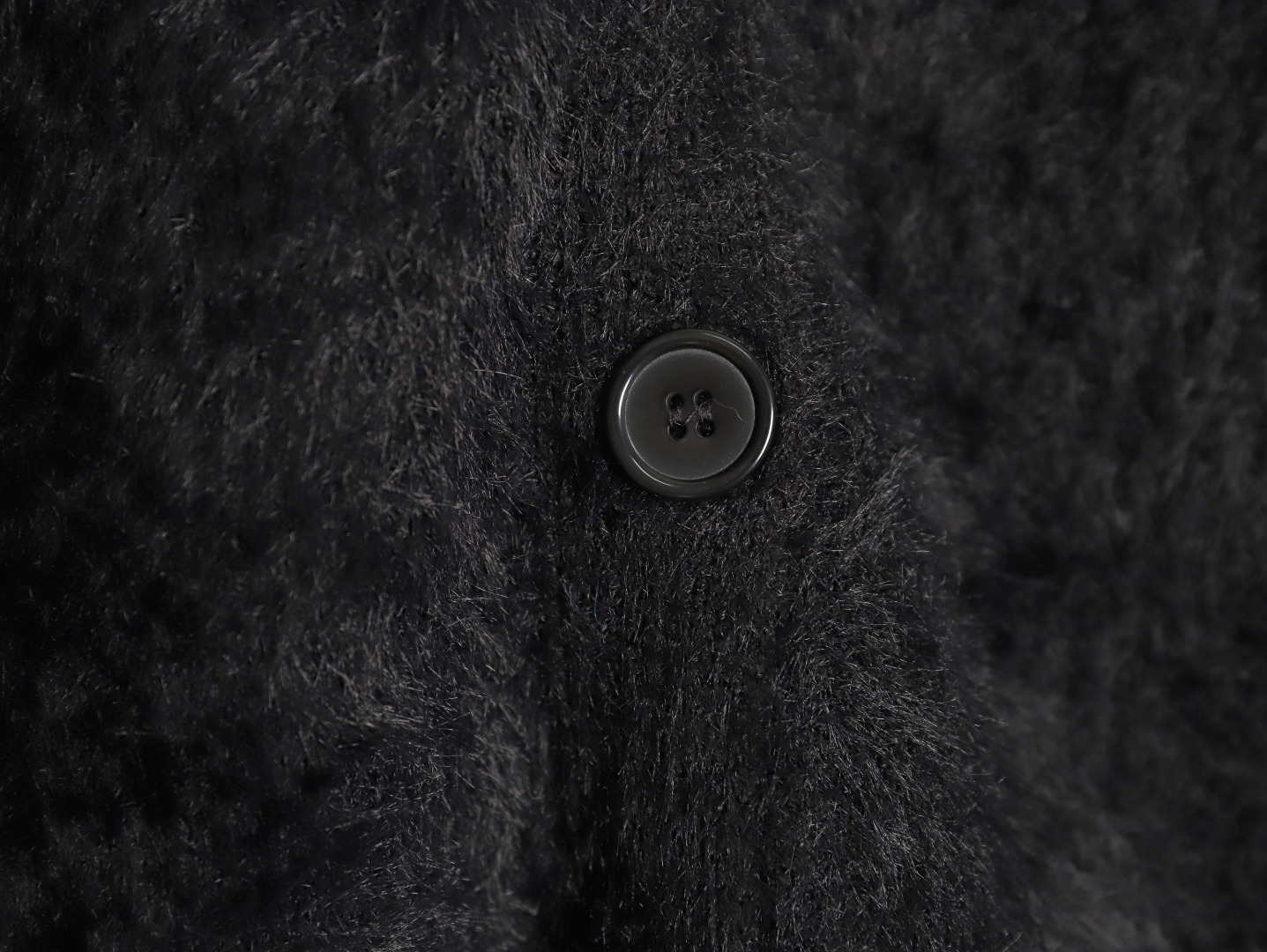 This cardigan features a basic straight V-neck silhouette with a slightly dropped shoulder. The armholes and body are joined with a fine needlework technique, rather than direct sewing. The placket features hand-sewn logo-engraved horn buttons. The placket, hem, and narrow cuffs are all treated with silk to extend their lifespan through repeated wear and washing.