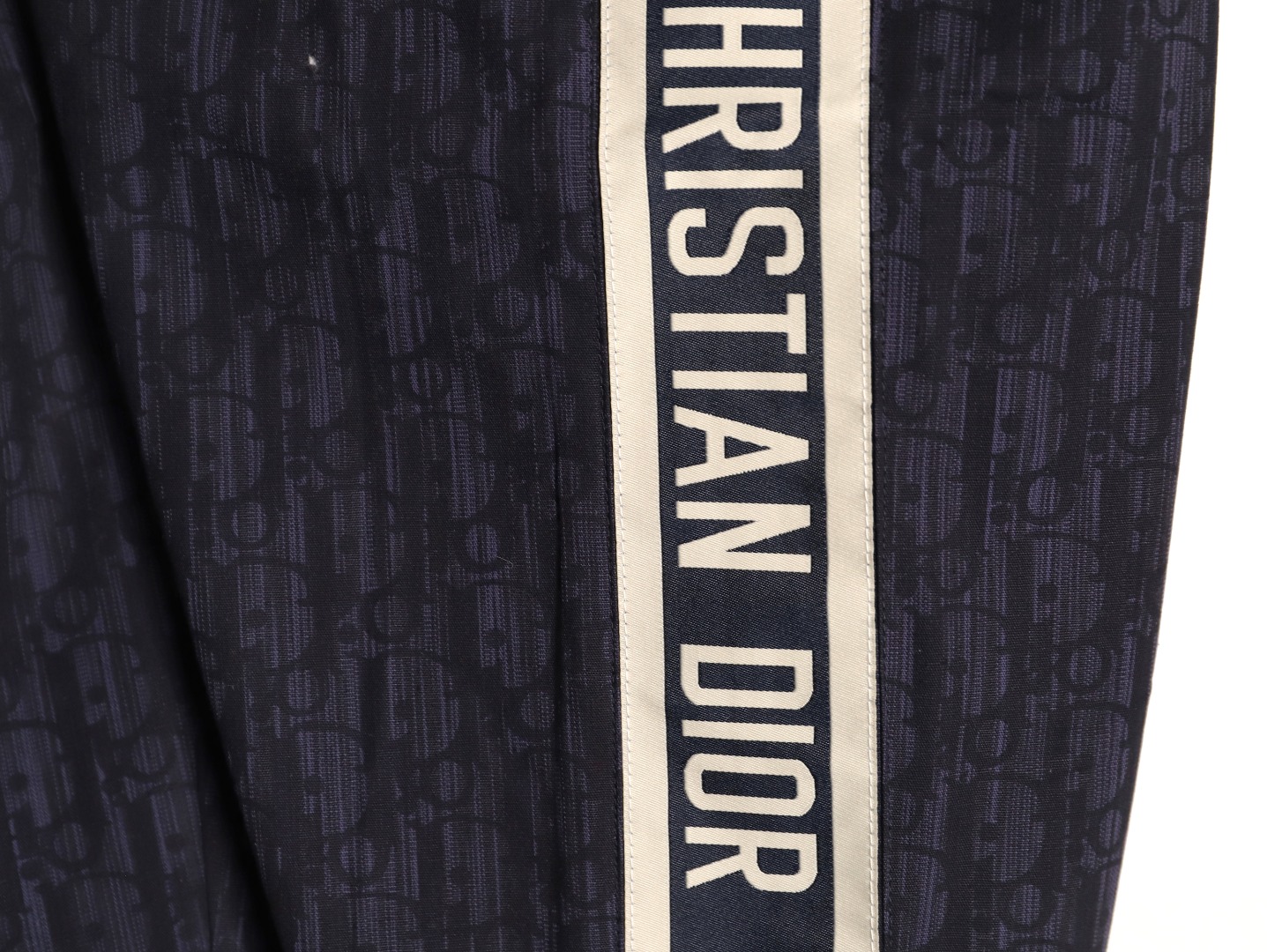 These Dior all-over jacquard woven trousers with side webbing draw inspiration from 1980s retro style. Crafted from a custom-made woven synthetic fabric, they offer a thick, textured feel. The fabric's distinct surface texture creates a unique sense of heft, creating a refined and powerful feel. While the minimalist design is stripped back to the essentials, every detail is meticulously crafted, showcasing exceptional craftsmanship.