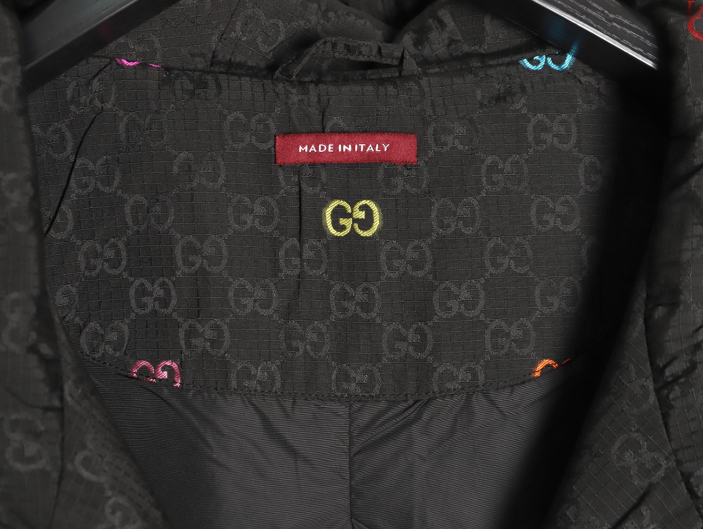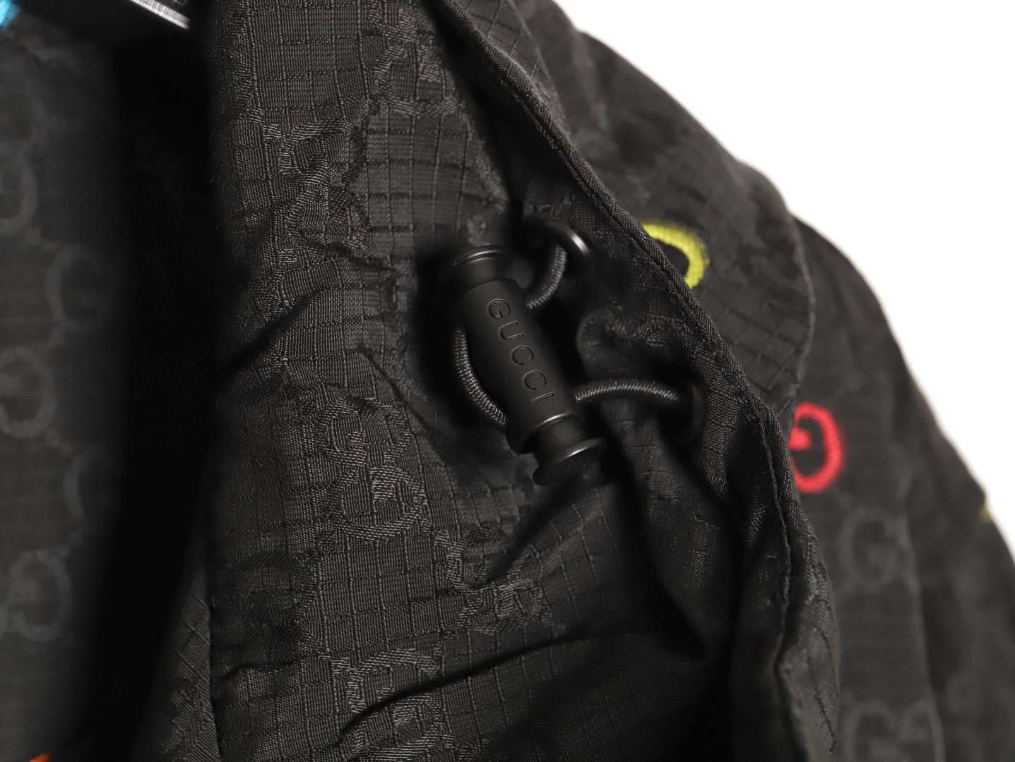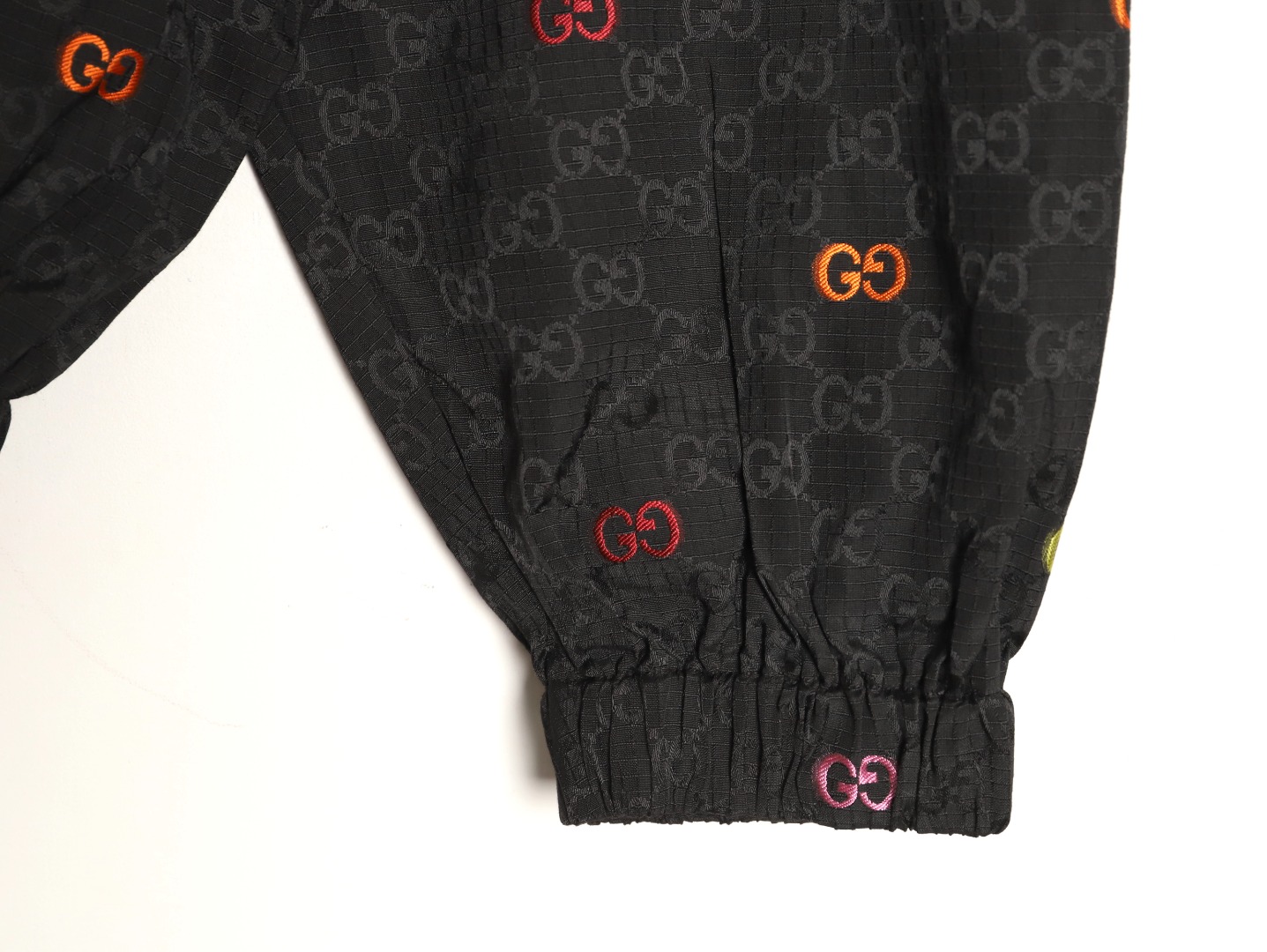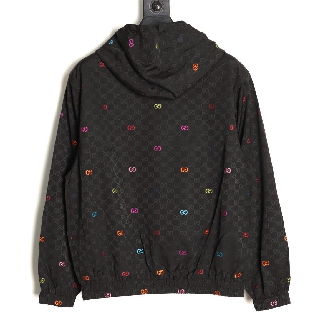 A GUCCI classic is reimagined with a stylish twist! This colorful jacquard GG canvas panel jacket is crafted from a premium blend (70% nylon, 30% polyester) using imported machinery to create a high-precision jacquard weave. The vibrant, yet understated, GG interlocking pattern creates a vibrant yet understated look. Paired with a black base fabric, it enhances the look and creates a luxurious feel.