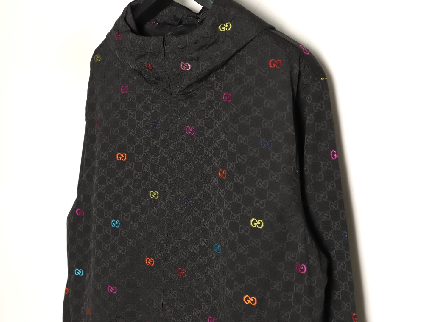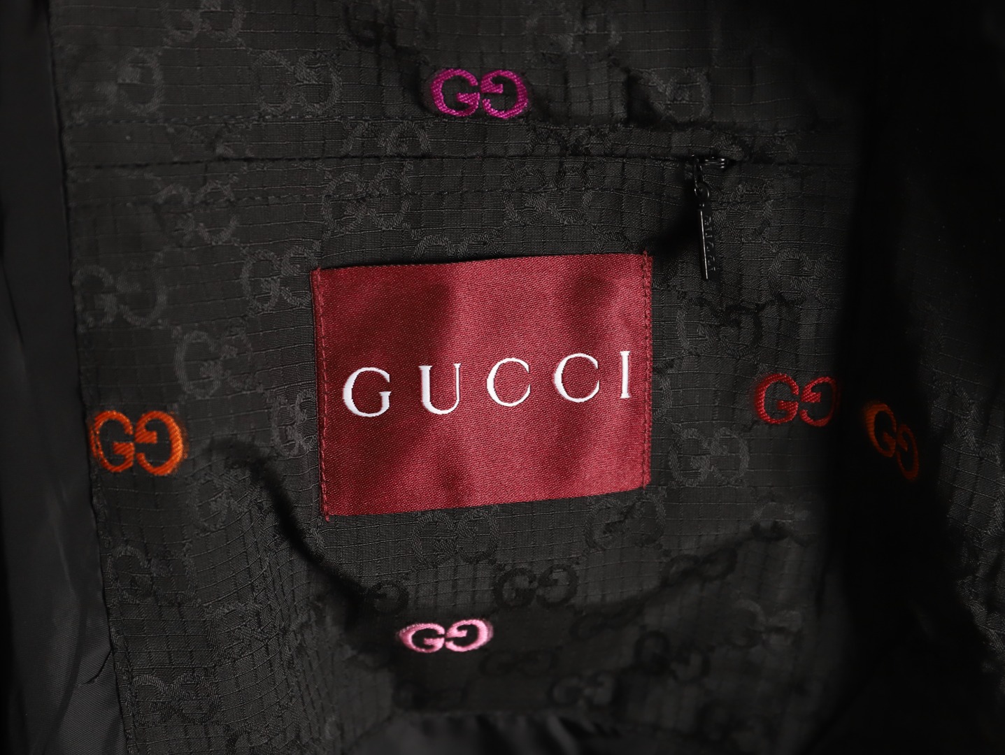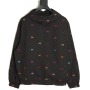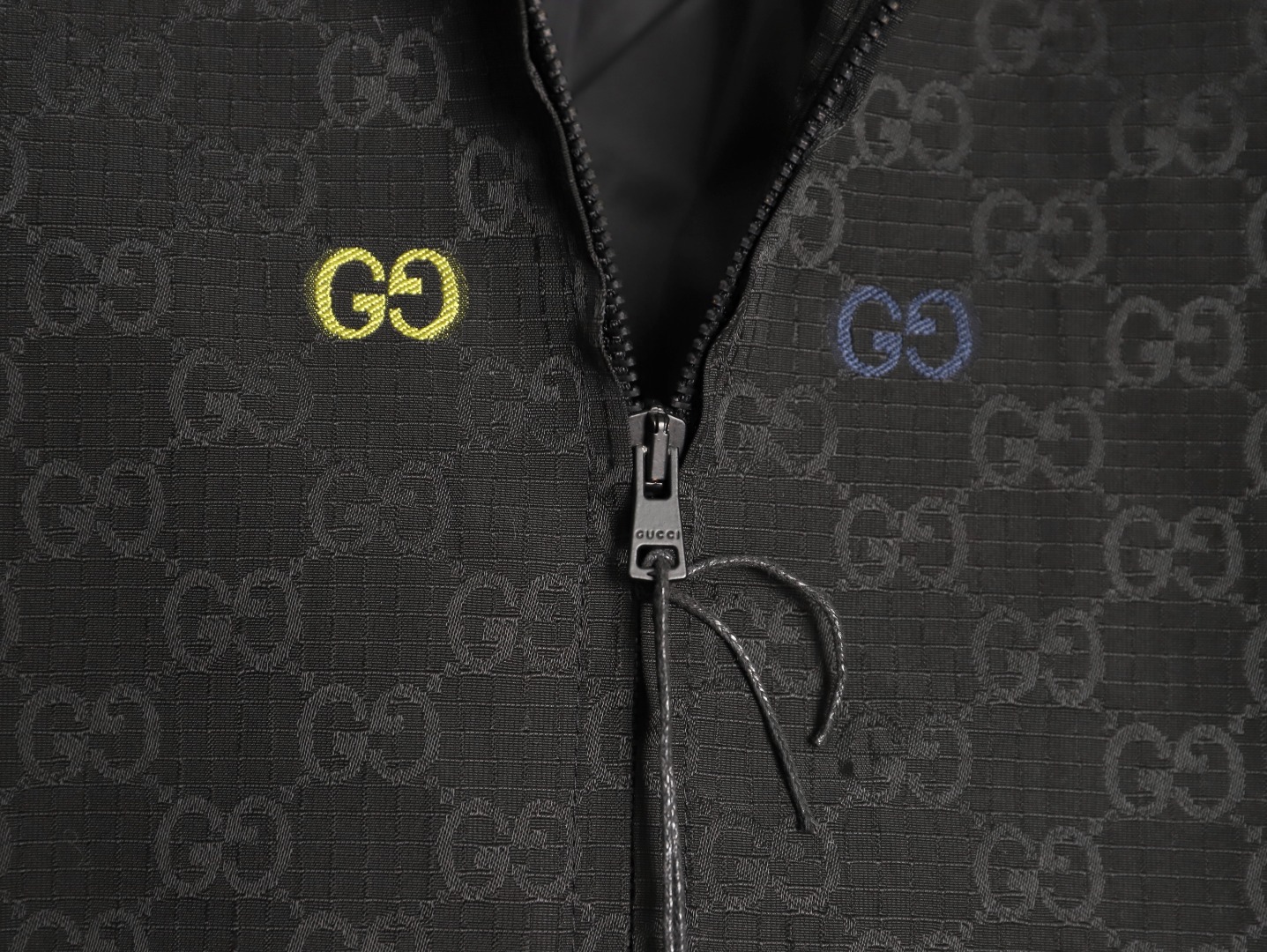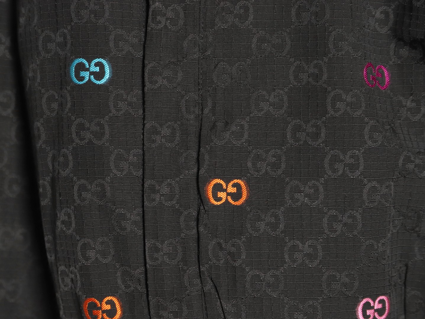 A GUCCI classic is reimagined with a stylish twist! This colorful jacquard GG canvas panel jacket is crafted from a premium blend (70% nylon, 30% polyester) using imported machinery to create a high-precision jacquard weave. The vibrant, yet understated, GG interlocking pattern creates a vibrant yet understated look. Paired with a black base fabric, it enhances the look and creates a luxurious feel.