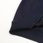 * **Custom-dyed navy blue knit fabric**, crisp, smooth, and luxurious