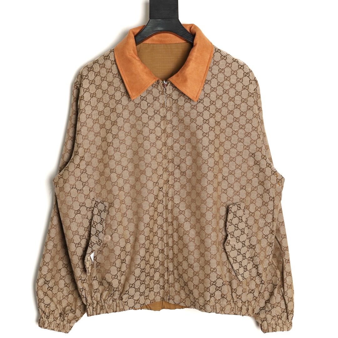 GUCCI Solid Monochrome Double-Sided GG Lapel Jacket**