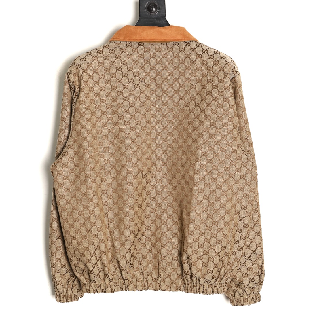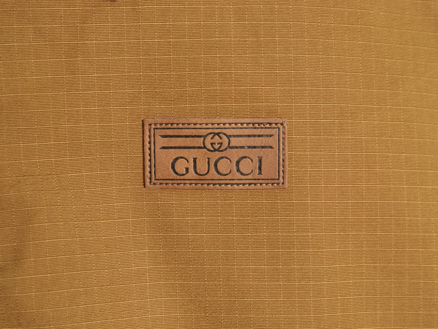 This Gucci jacket features a custom-matched Double G jacquard fabric with a solid cotton check pattern, creating a refined and luxurious feel. Custom-dyed and treated with a special wash process, the fabric's color is stable and durable, showcasing the pure and classic brand style.