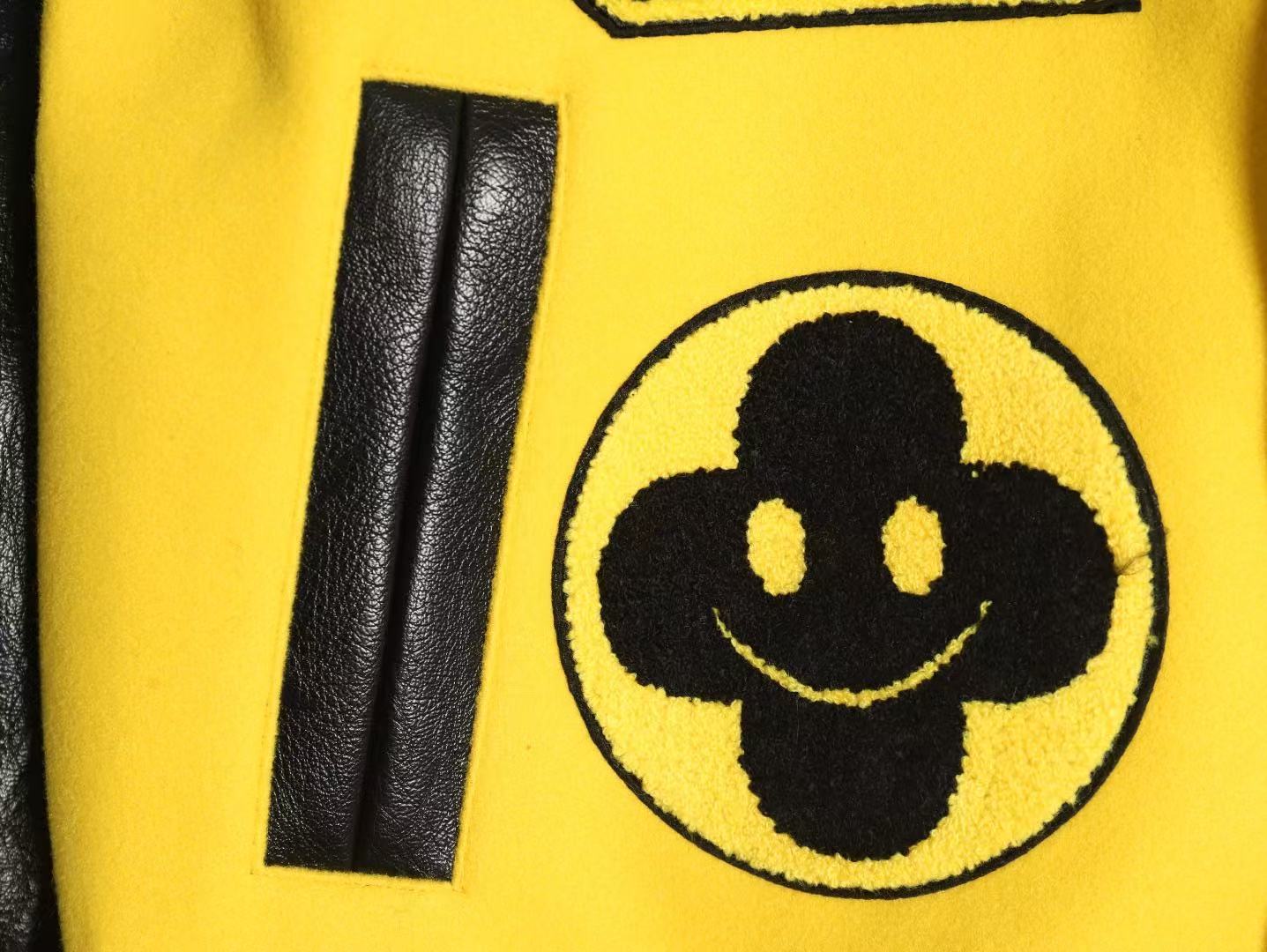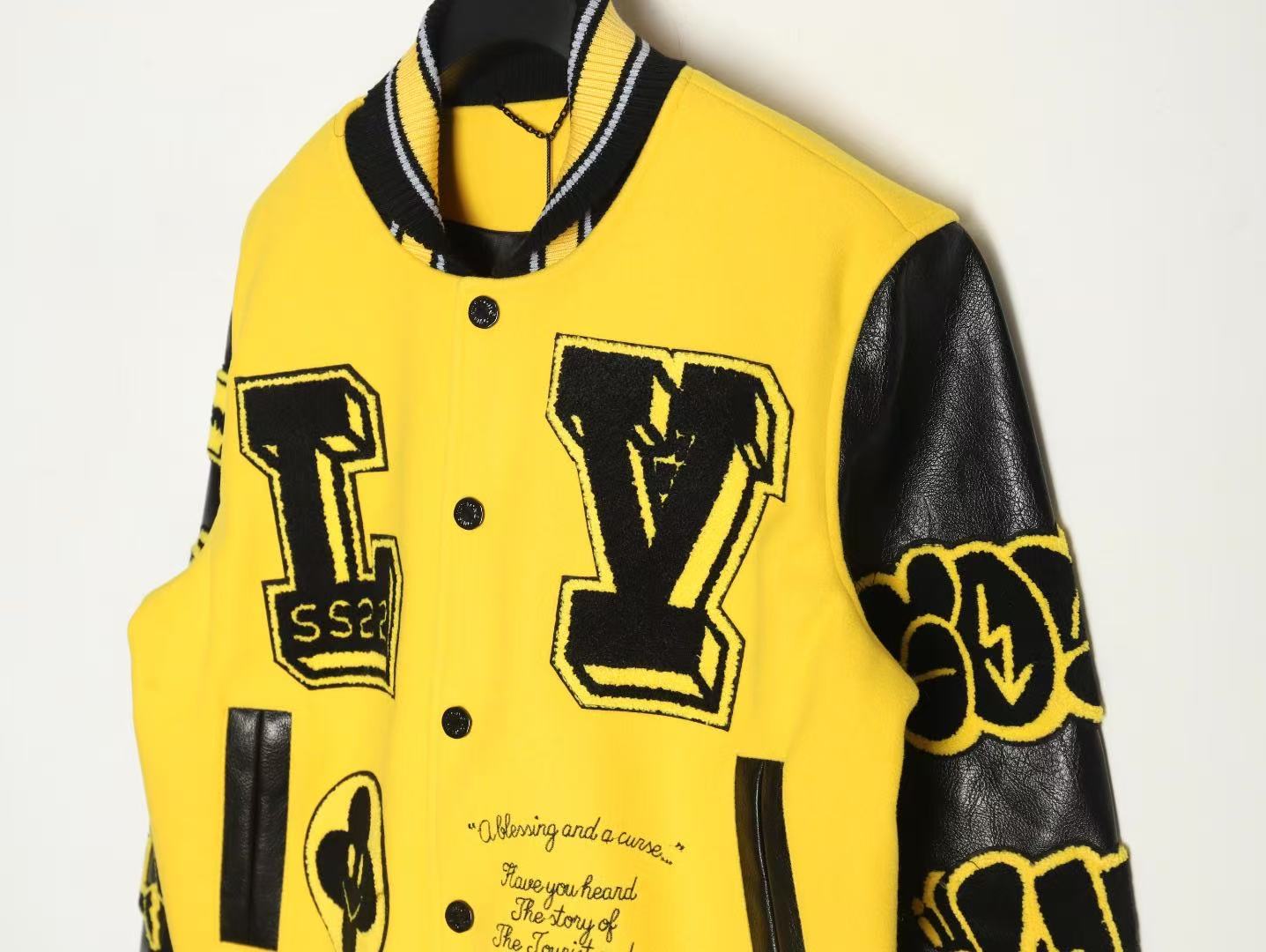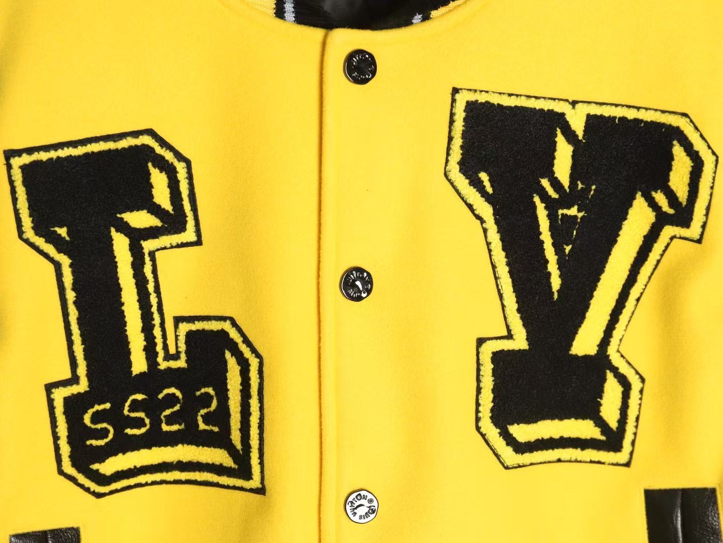* **Intricate Embroidery**: The embroidery is meticulously crafted using imported **terry embroidery machines**, ensuring every detail is meticulously crafted. The large **LV skull** pattern on the back is particularly striking, achieved through high-density embroidery, creating a truly three-dimensional effect. Each pattern is meticulously embroidered, using techniques including infrared laser engraving to ensure every detail is perfectly rendered. The jacket features **12 labeling** and **one flat embroidery**. Four different embroidery techniques combine to create this stylish and artistic baseball jacket.