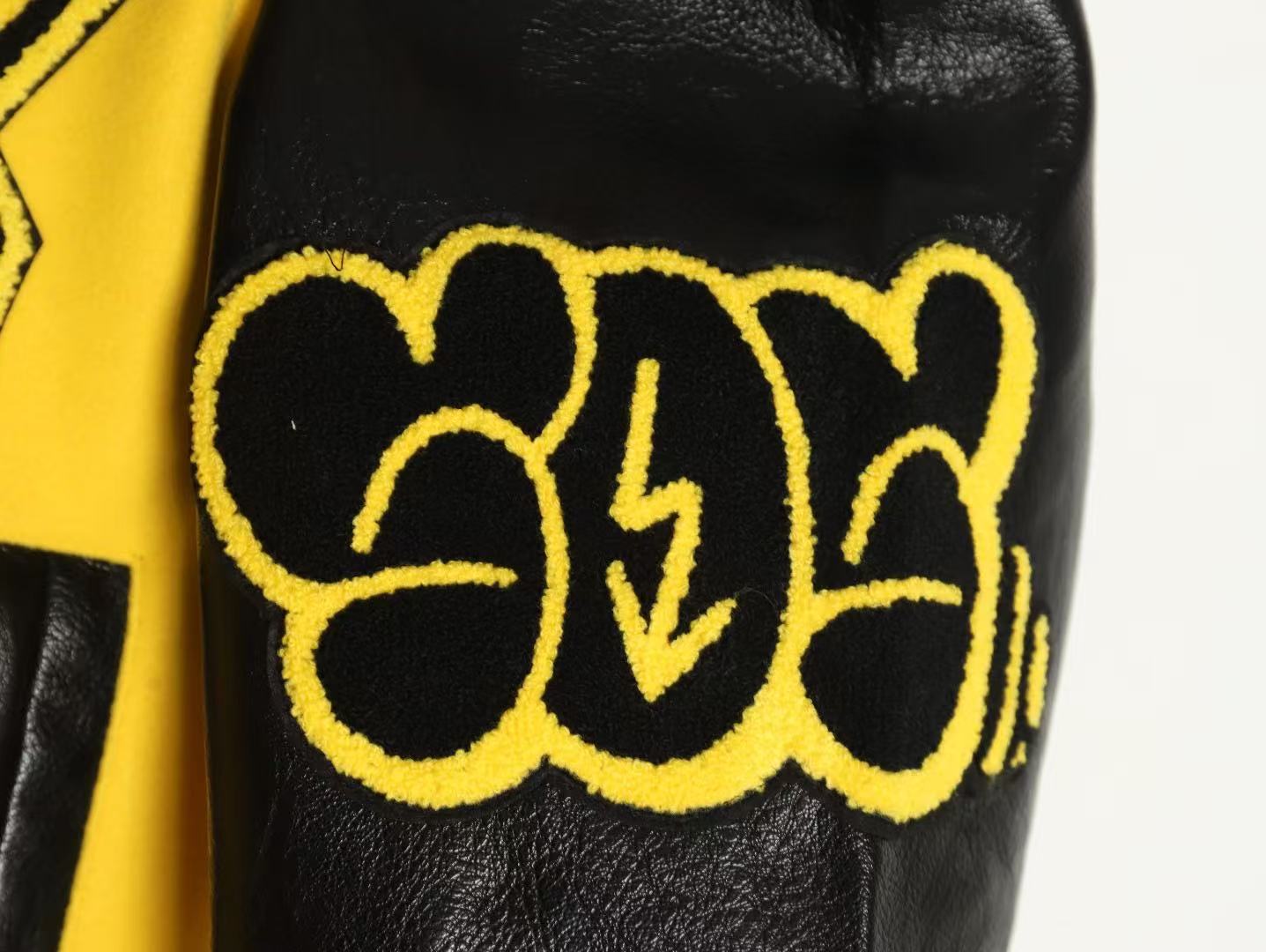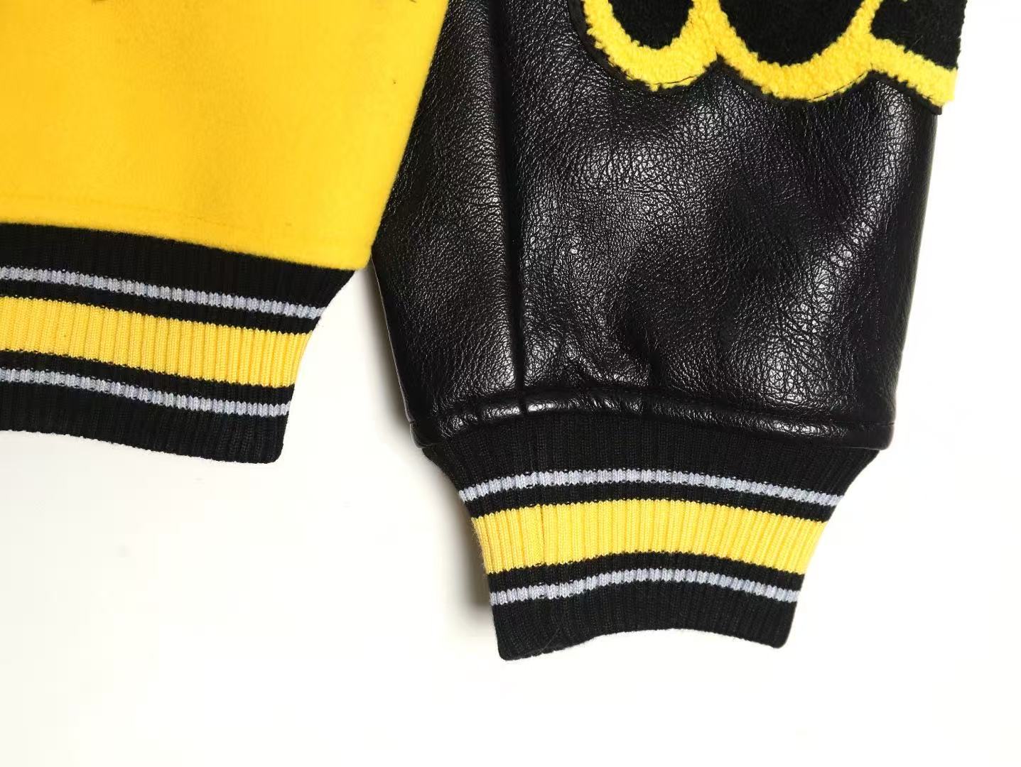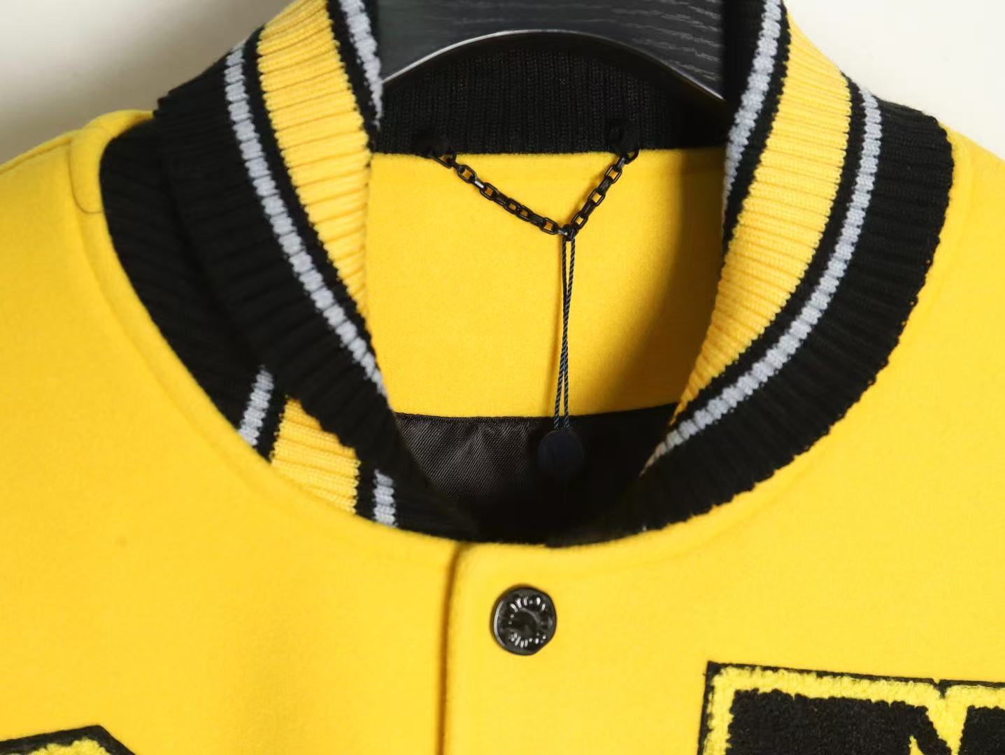 * **Intricate Embroidery**: The embroidery is meticulously crafted using imported **terry embroidery machines**, ensuring every detail is meticulously crafted. The large **LV skull** pattern on the back is particularly striking, achieved through high-density embroidery, creating a truly three-dimensional effect. Each pattern is meticulously embroidered, using techniques including infrared laser engraving to ensure every detail is perfectly rendered. The jacket features **12 labeling** and **one flat embroidery**. Four different embroidery techniques combine to create this stylish and artistic baseball jacket.