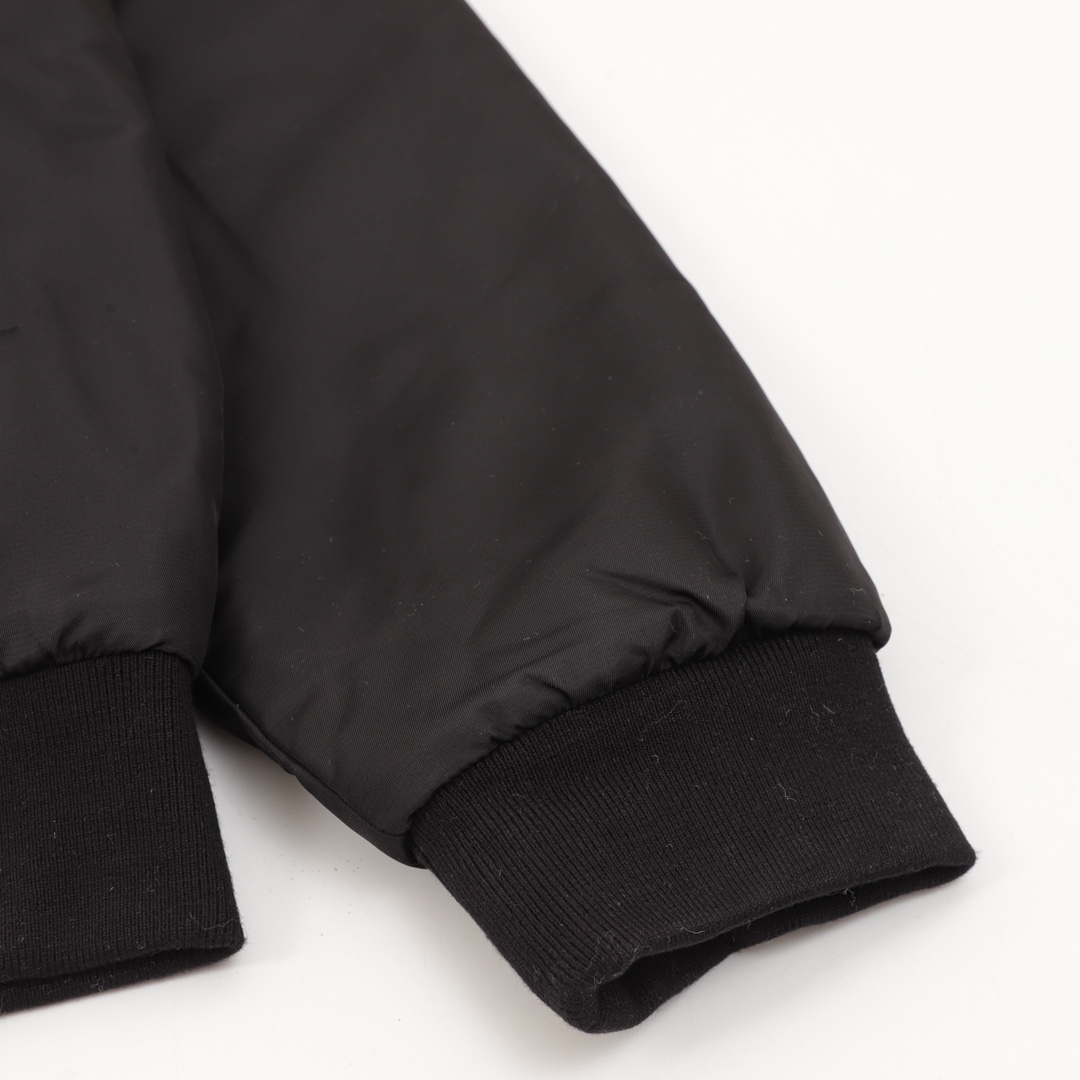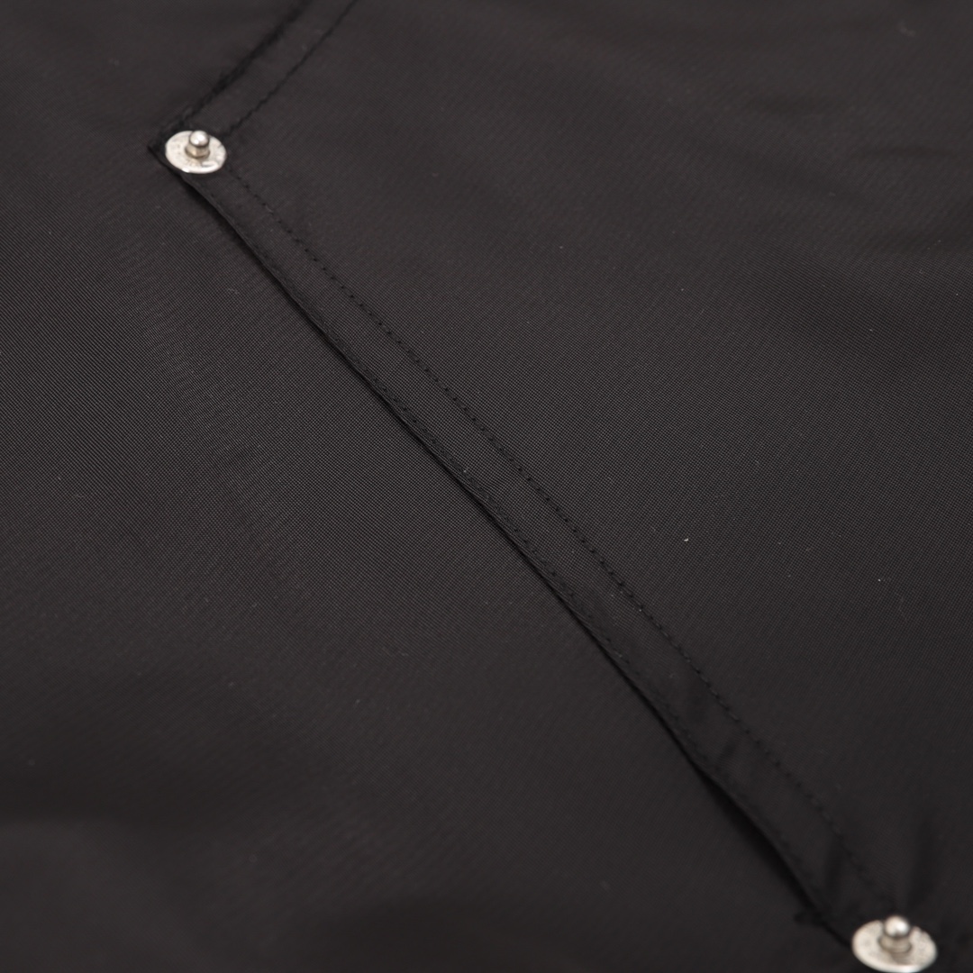 Silver Custom Metal Zipper on the Front: The front features a silver custom metal zipper. The zipper's rich, lustrous finish and premium metallic texture create a striking visual contrast against the black fabric, instantly elevating the jacket's stylish and refined aesthetic. The zipper teeth mesh tightly together, ensuring smooth zipper movement without any catching or misalignment. Even after prolonged use, it's less susceptible to oxidation, rust, or loosening, making it far more durable than ordinary zippers. The hidden branding on the zipper further enhances its identity, distinguishing it from cheap, commonly used accessories and showcasing the craftsmanship of luxury goods.