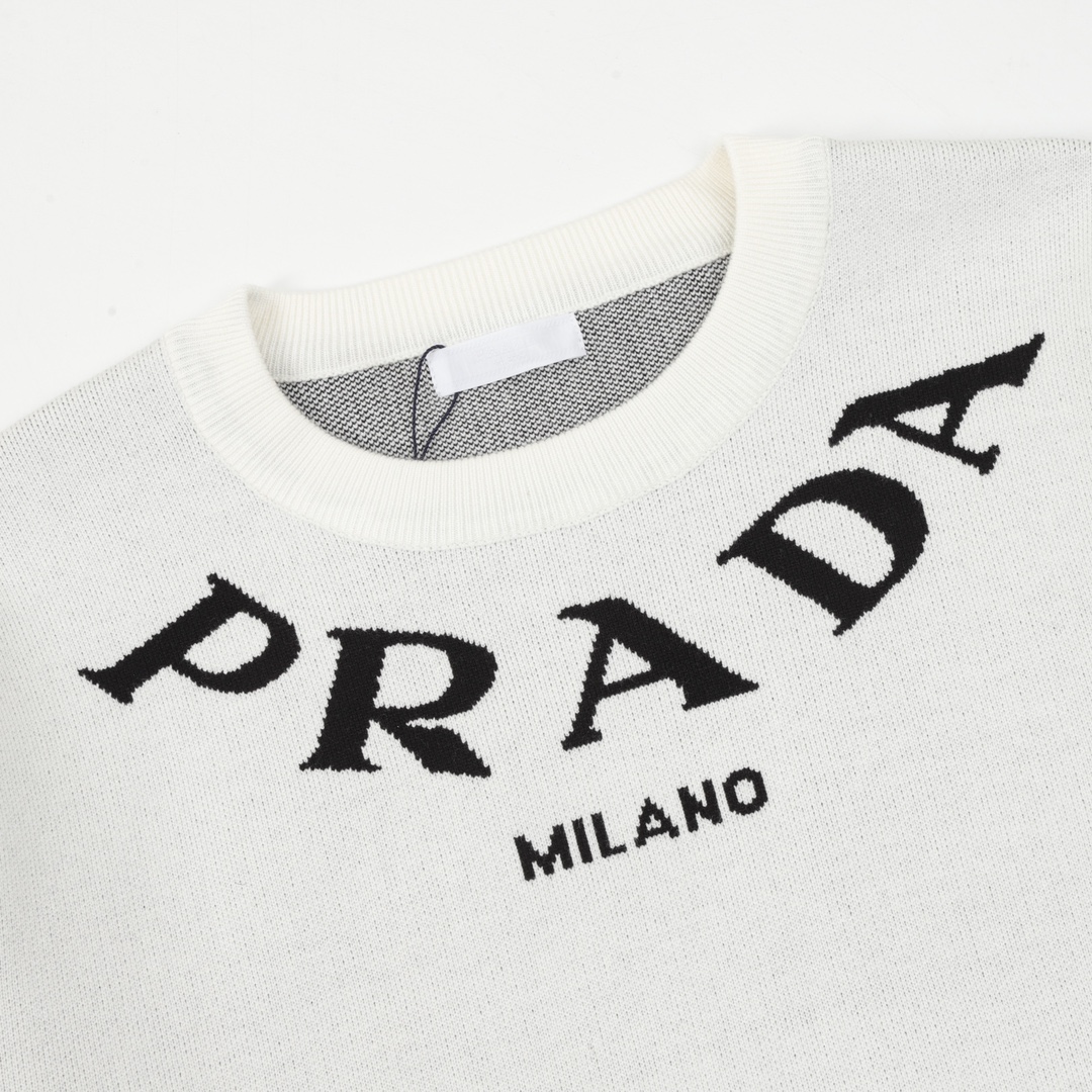 Prada Yarn-Dyed Letter Logo Knit Crew Neck Sweater Product Details