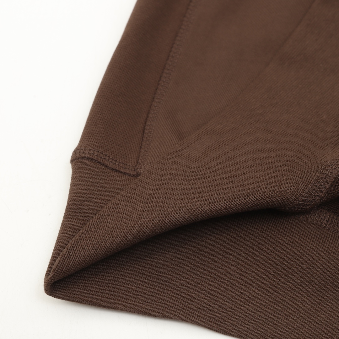 The body is constructed from 380g loop cotton and knitted sweatshirt fabric. The heavyweight imparts a substantial feel, allowing for a distinctly thick and drapey feel. The texture is crisp and effortless, eliminating the risk of a lightweight sweatshirt looking cheap. The loop cotton process creates a fine terry structure on the surface, creating a soft, skin-friendly feel. Wearing it directly against the skin is non-rough and itchy, creating a warm, cloud-like sensation. The addition of knitted fabric enhances elasticity and breathability, ensuring a comfortable fit and a comfortable feel during daily activities. Even layering in autumn and winter keeps skin dry, eliminating the worry of heavy, airtight clothing. The 380g weight delivers excellent warmth, making it perfect for wearing alone in cooler weather. Layering it with a coat or down jacket in winter adds a layered look, making it perfect for a variety of fall and winter wear. The pre-shrunk fabric resists deformation and shrinkage after repeated washings, ensuring it maintains its pristine appearance for extended wear.
