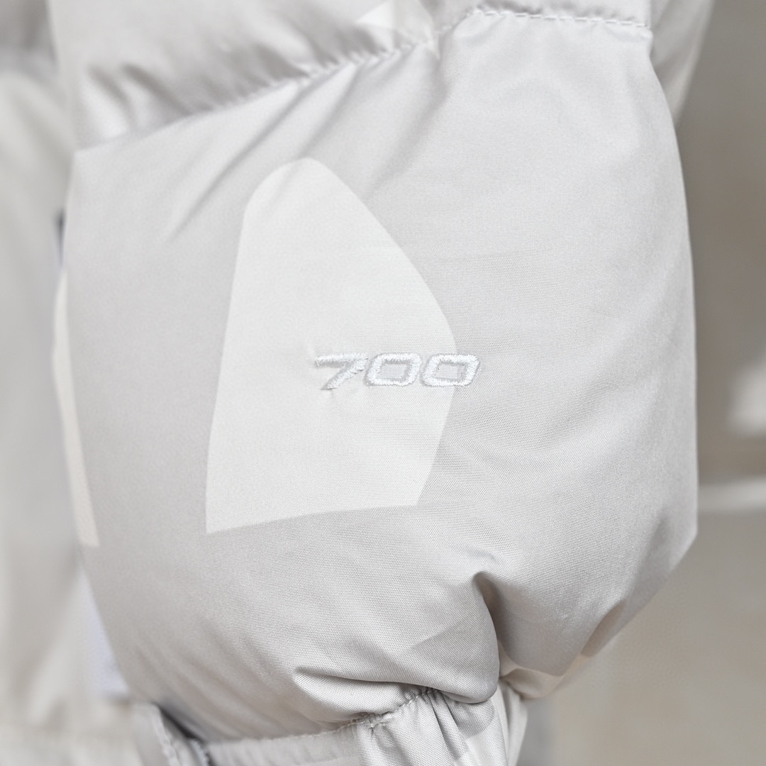 The down jacket's embroidery pattern utilizes imported Tajima embroidery with a thousand-needle technique and Japanese embroidery thread, ensuring every character and pattern is rich and three-dimensional, resulting in exceptional precision and artistic effect. The meticulous embroidery makes this down jacket visually striking and showcases the high-end collaboration between KAWS and The North Face.