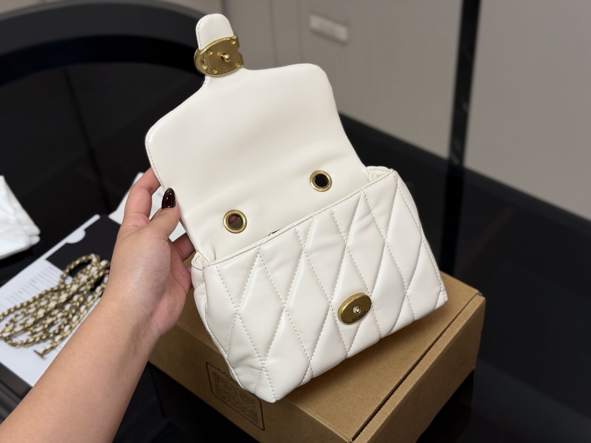 The Coach Tabby Top Handle has finally received a brand-new upgrade, featuring Nappa leather, offering an unparalleled softness and luxurious texture. This bag not only exudes a strong sense of luxury visually, but also the exquisite texture of every inch of the leather delivers a truly luxurious experience.