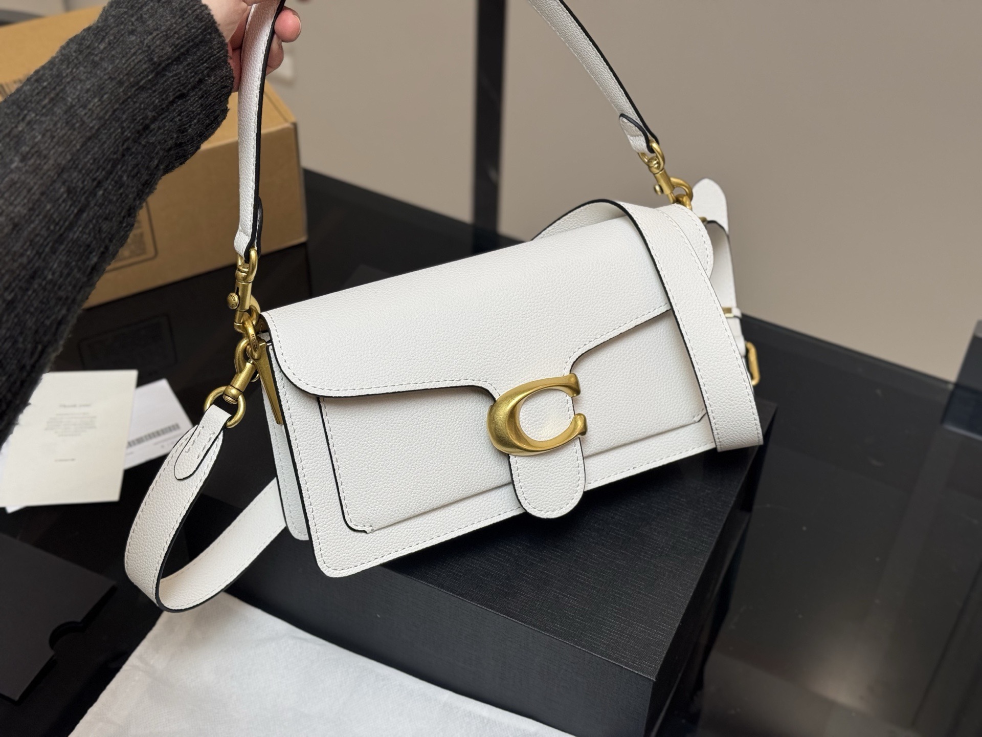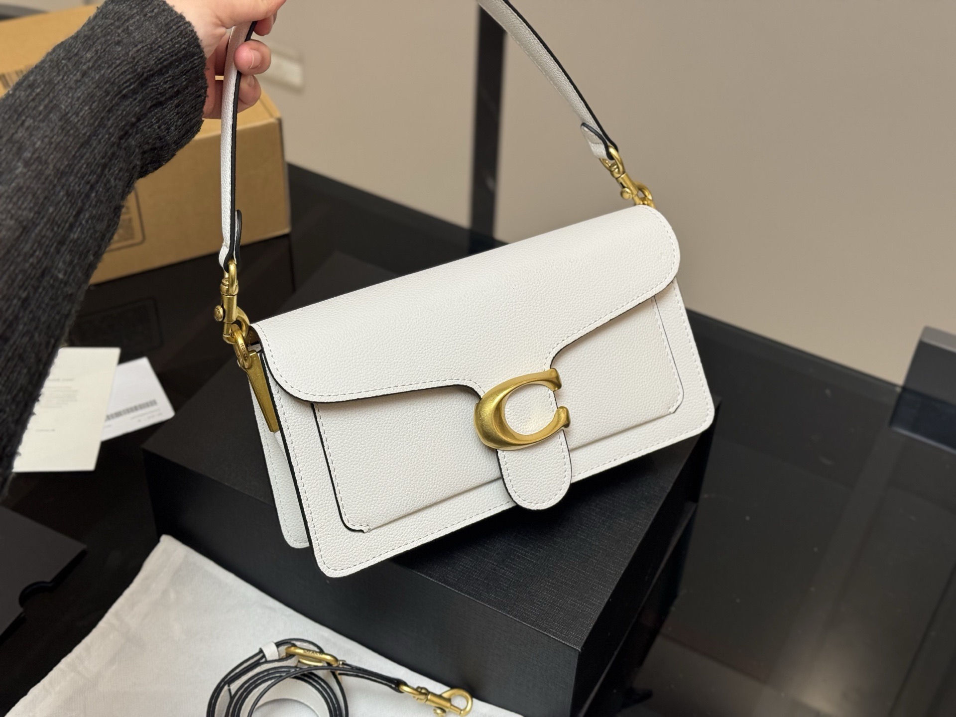 Crafted from high-quality cowhide, it's both soft and durable. Paired with the classic Tabby design, it exudes a unique vintage charm. The Coach logo is engraved on the hardware, showcasing the brand's refined craftsmanship and luxurious aesthetic.