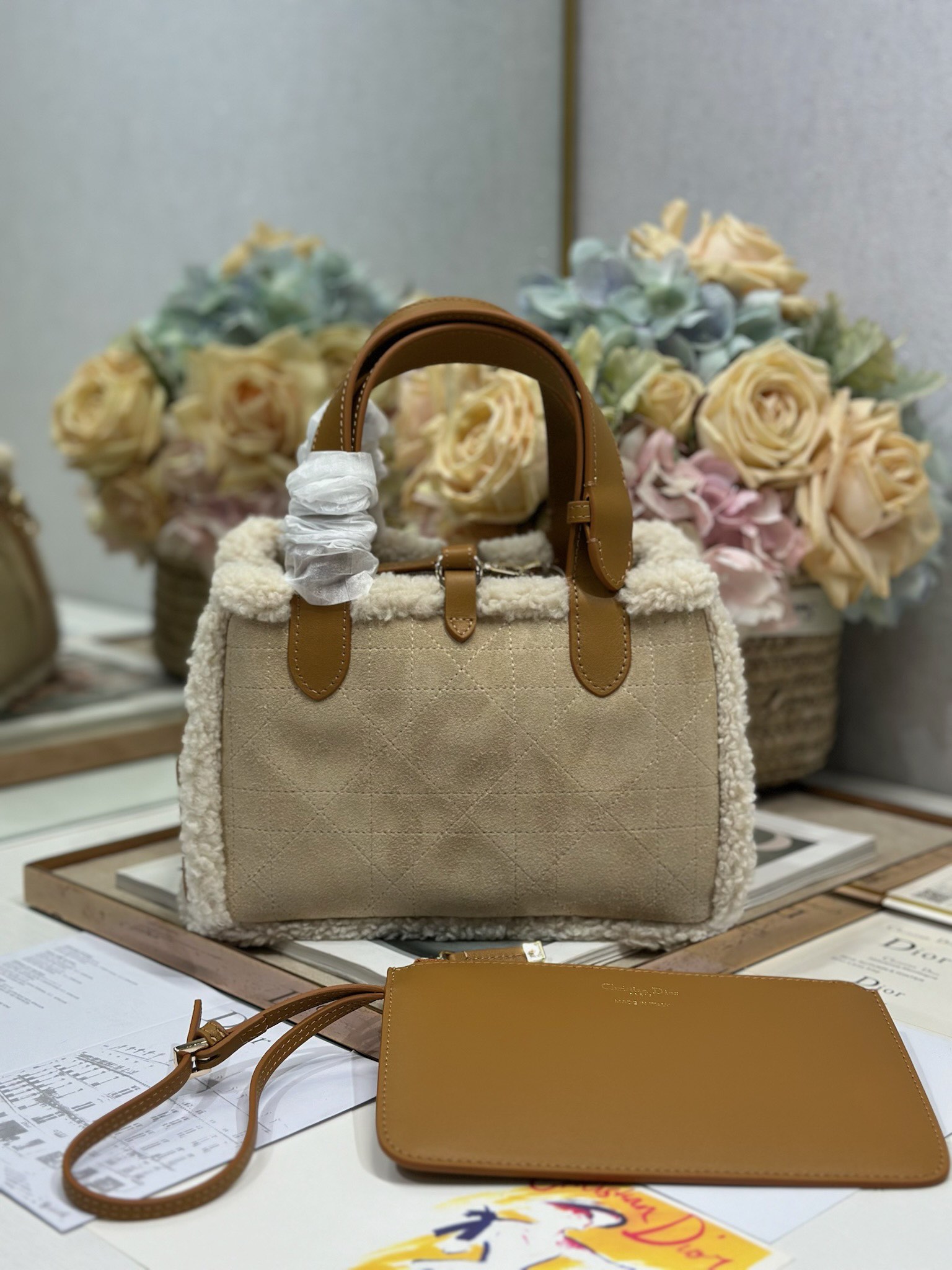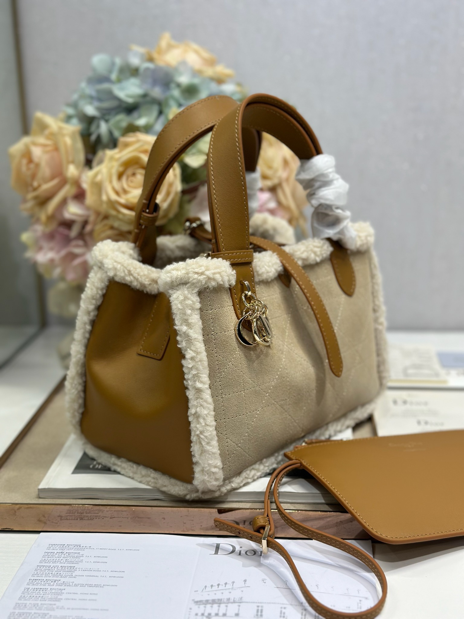 💯[Dior Toujours Small Handbag | Cowhide & Leather: Beige Suede x Brown Cowhide]💎