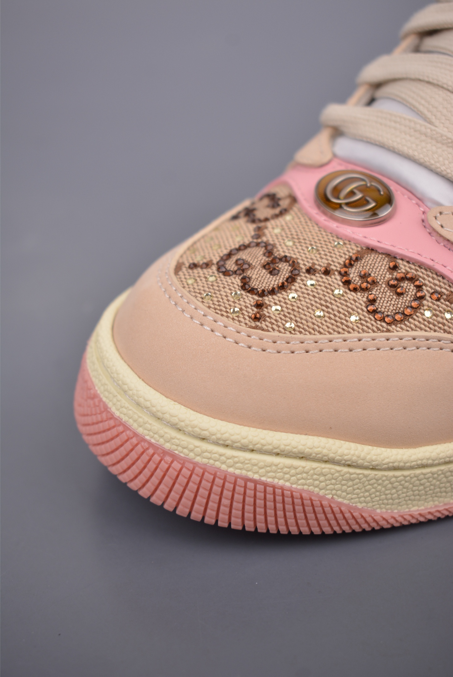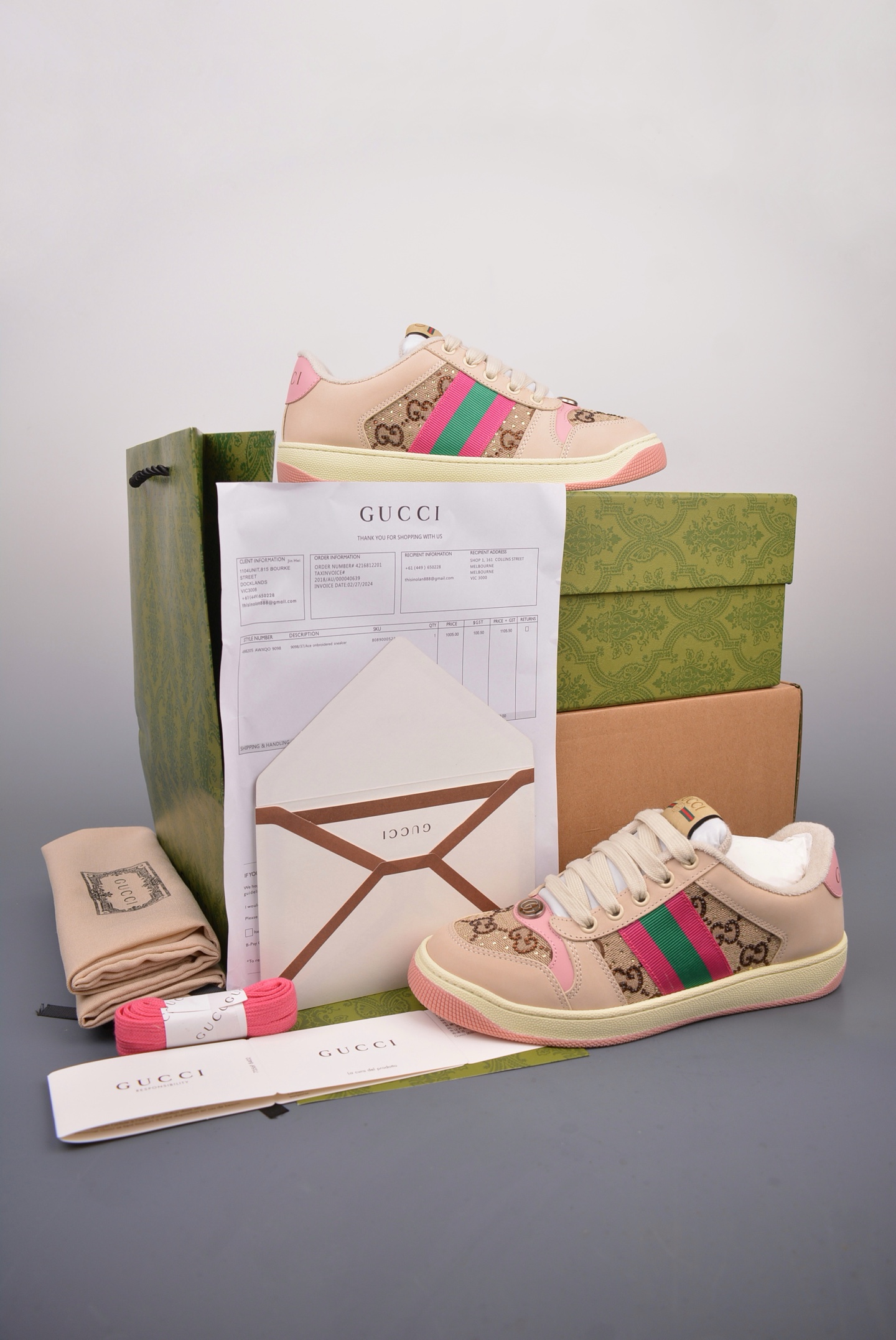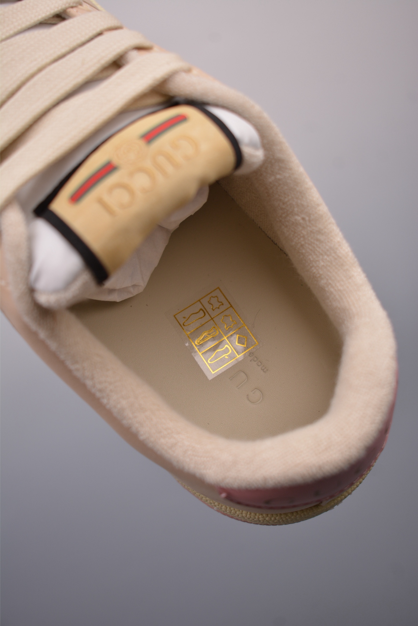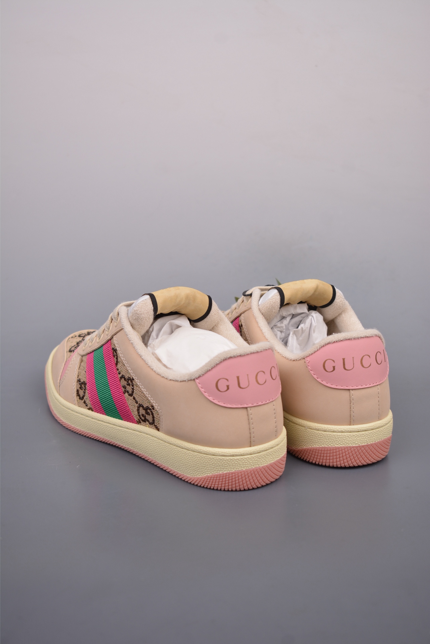 Gucci's classic Screener series arrives in a Dragon Fruit Pink colorway, blending retro streetwear with luxurious fashion aesthetics. Developed with authentic craftsmanship, the entire shoe takes three months to create, featuring over 20 upgraded details, making it a truly premium, top-tier shoe on the market.