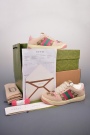 The inner shoe features an eco-friendly latex insole for a soft, supportive feel. The entire shoe is protected by the original pear-shaped, ultra-soft velvet paper support.