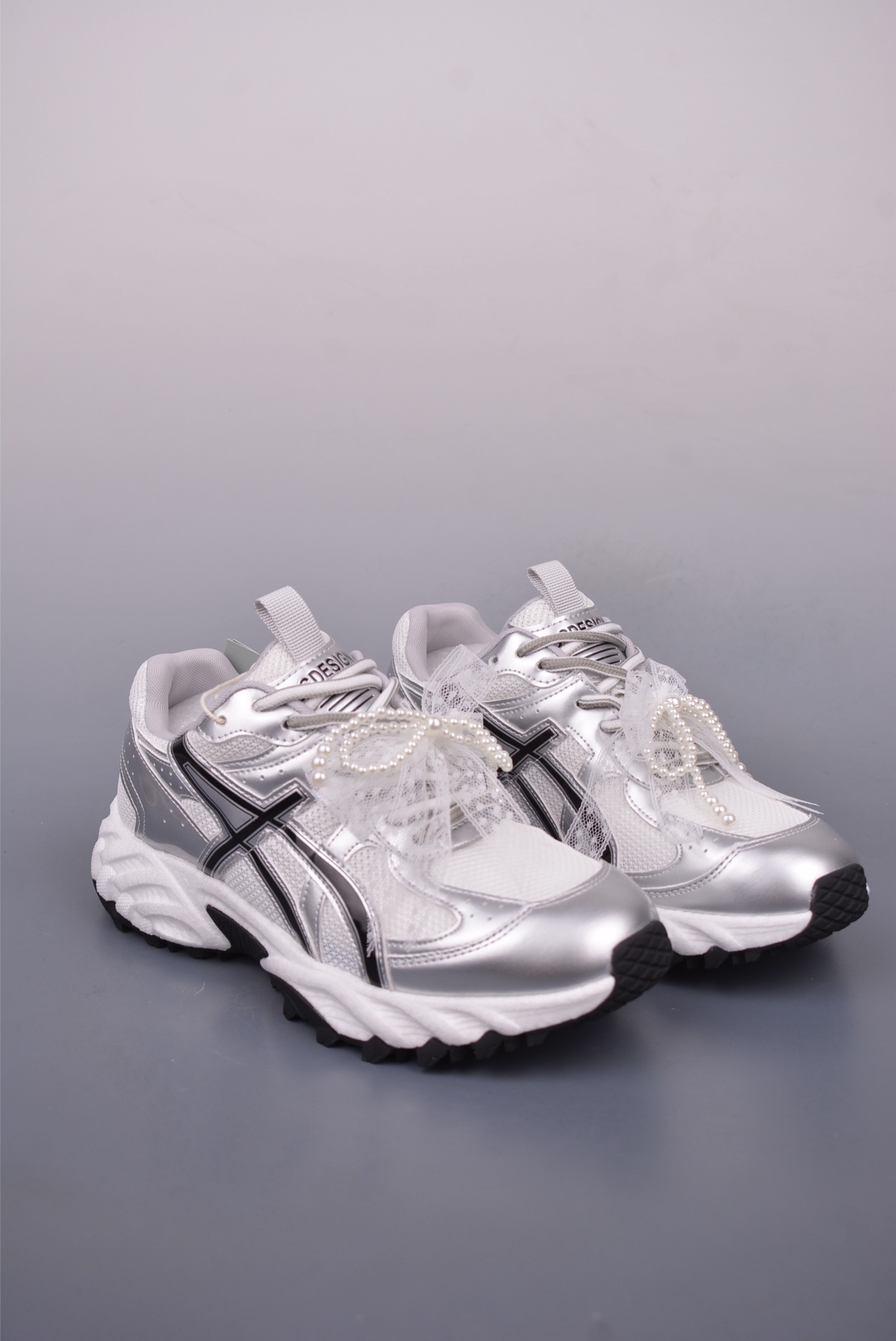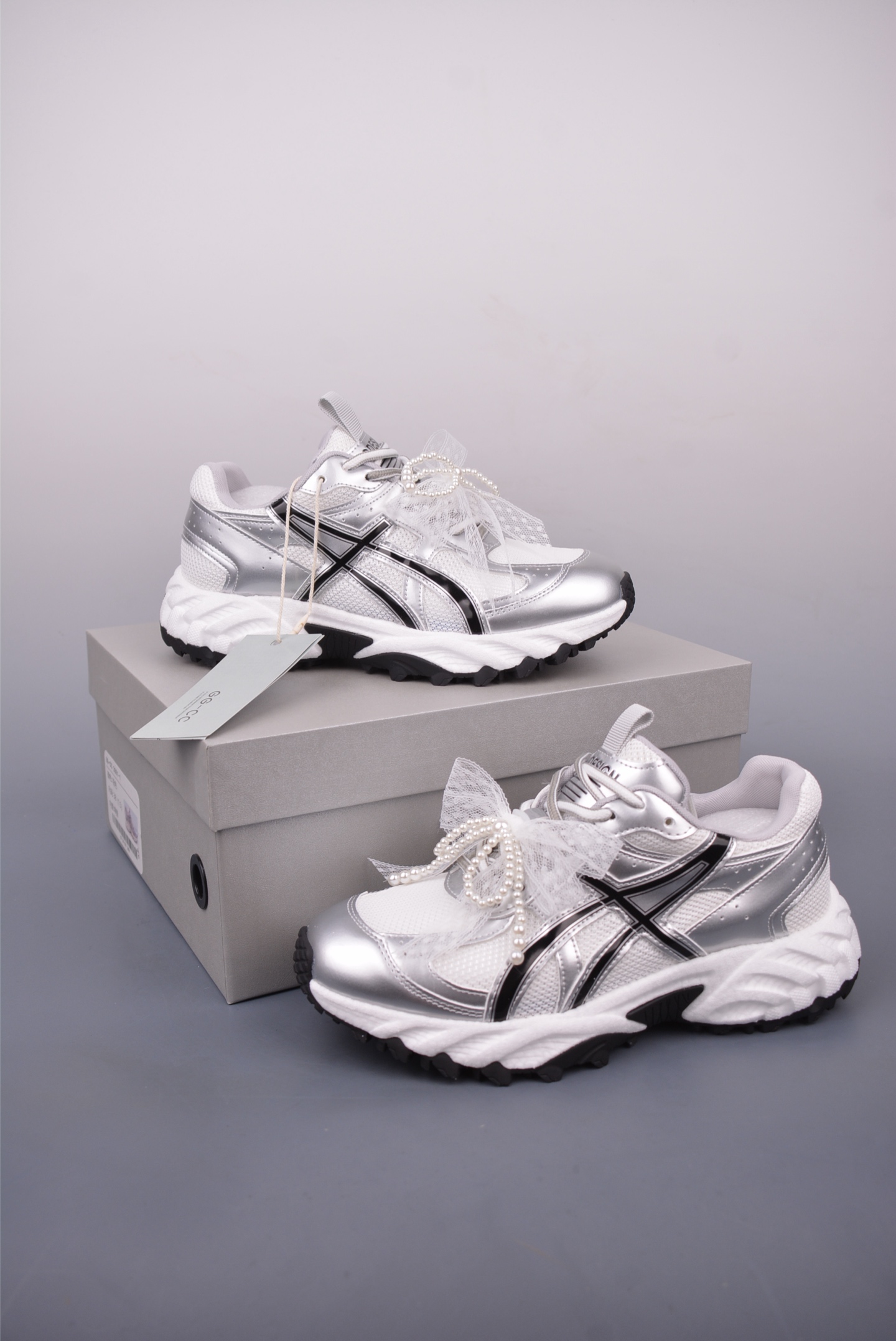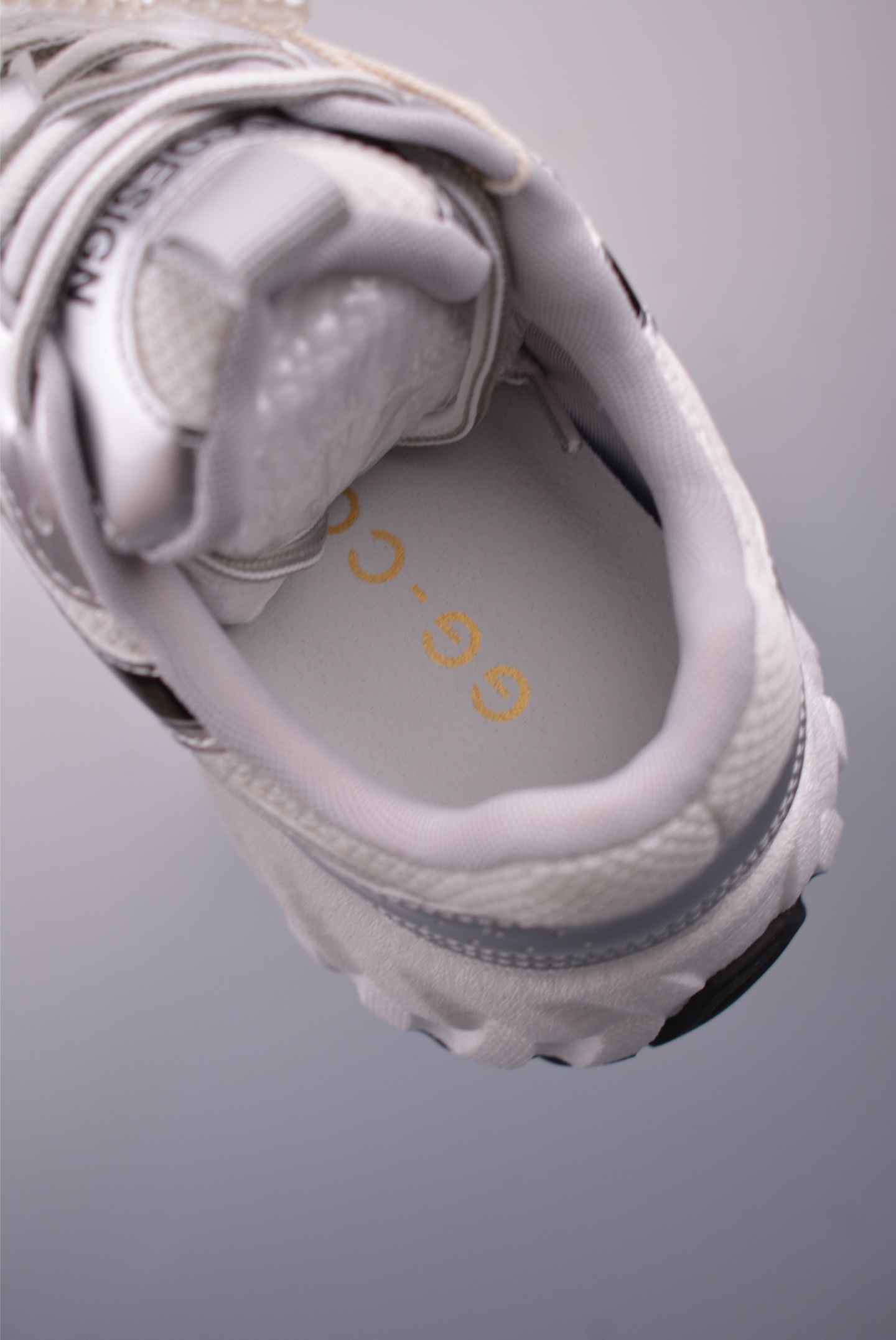 For summer 2024, GG-CC introduces a new interpretation of the Chunky Low Lace & Pearl dad shoe. This cleverly blends a retro thick-soled silhouette with romantic and delicate lace and pearl embellishments, creating a recognizable haute sport aesthetic.